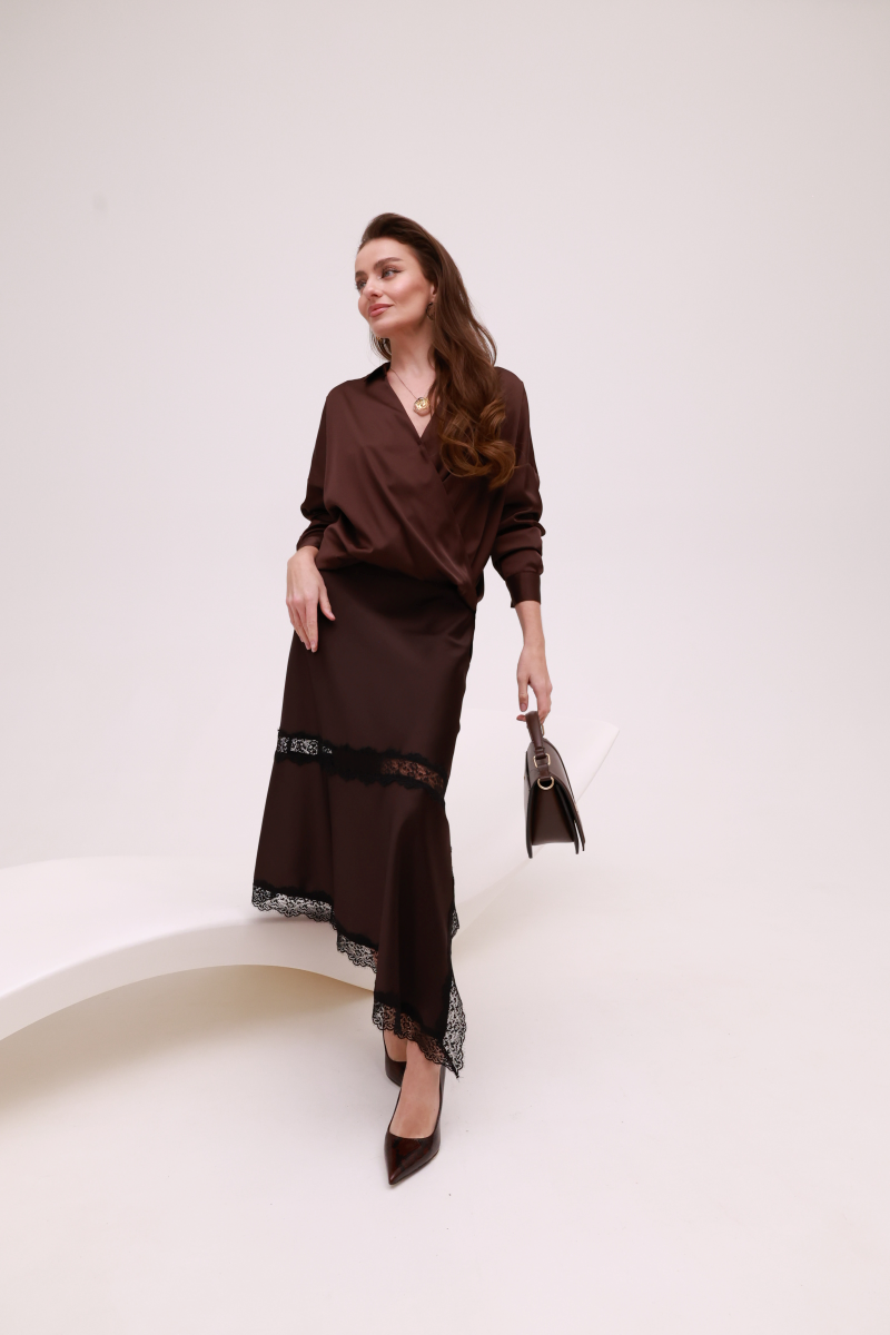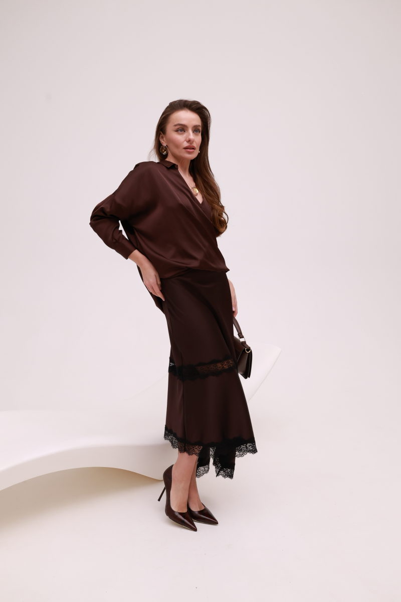 Глибокий шоколадний відтінок виглядає благородно й універсально, легко поєднуючись як з класичними спідницями, так і з сучасними брюками.