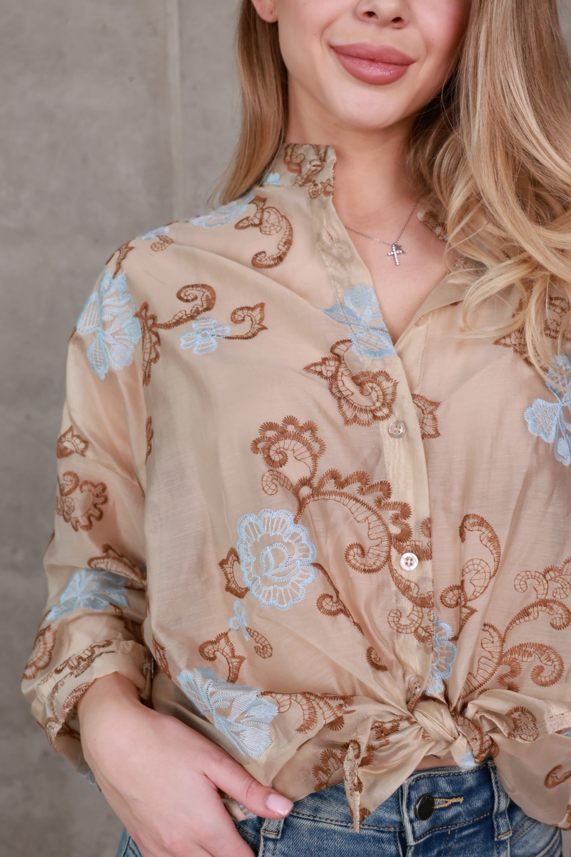 Легка блуза з делікатним квітковим орнаментом створює жіночний та витончений образ.