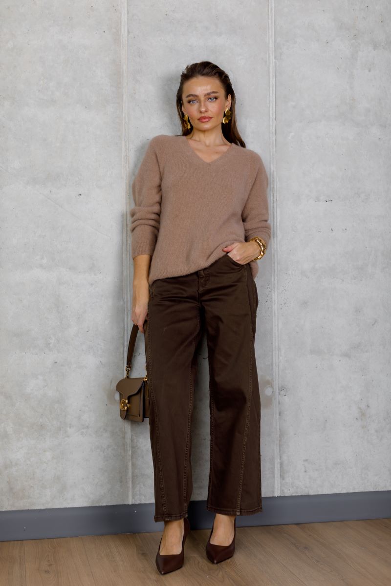 Ці жіночі джинси у насиченому шоколадному відтінку — елегантне рішення для тих, хто шукає стильну альтернативу класичним синім або чорним моделям. Пряма штанина створює візуальну гармонію та додає силуету стриманої витонченості.