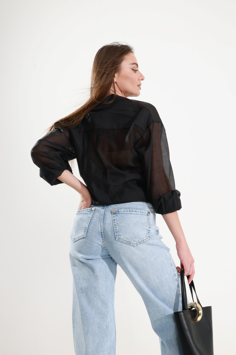 Модель легко комбінується з базовими сорочками, напівпрозорими блузами або трикотажем — від мінімалістичних casual-образів до більш акцентних поєднань.