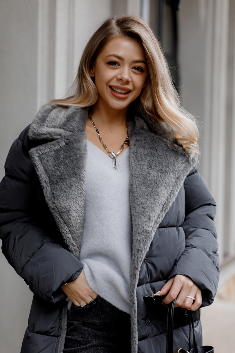 Жіночий зимовий пуховик. Колір: Сірий