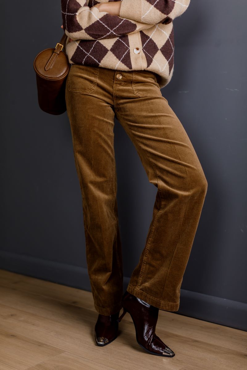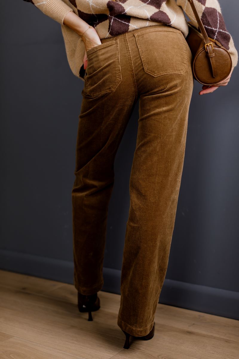 Теплі штани з м’якого вельвету в насиченому карамельному відтінку.