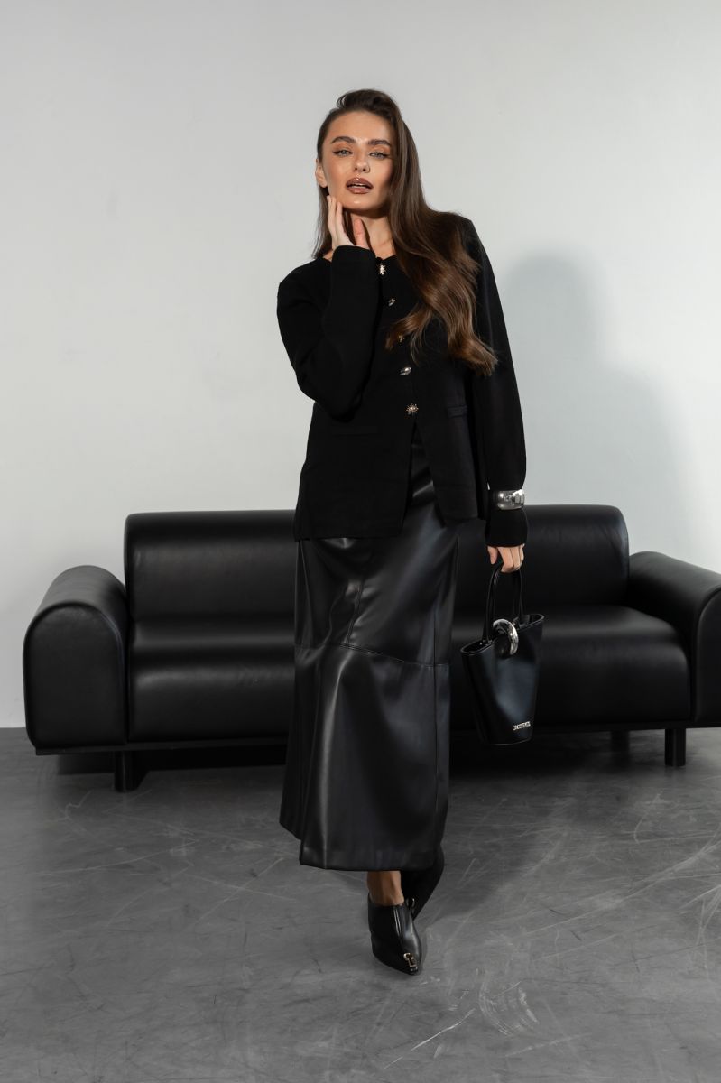 Жіноча міді-спідниця з преміальної екошкіри з розрізом спереду. Стриманий крій італійського бренду IMPERIAL.