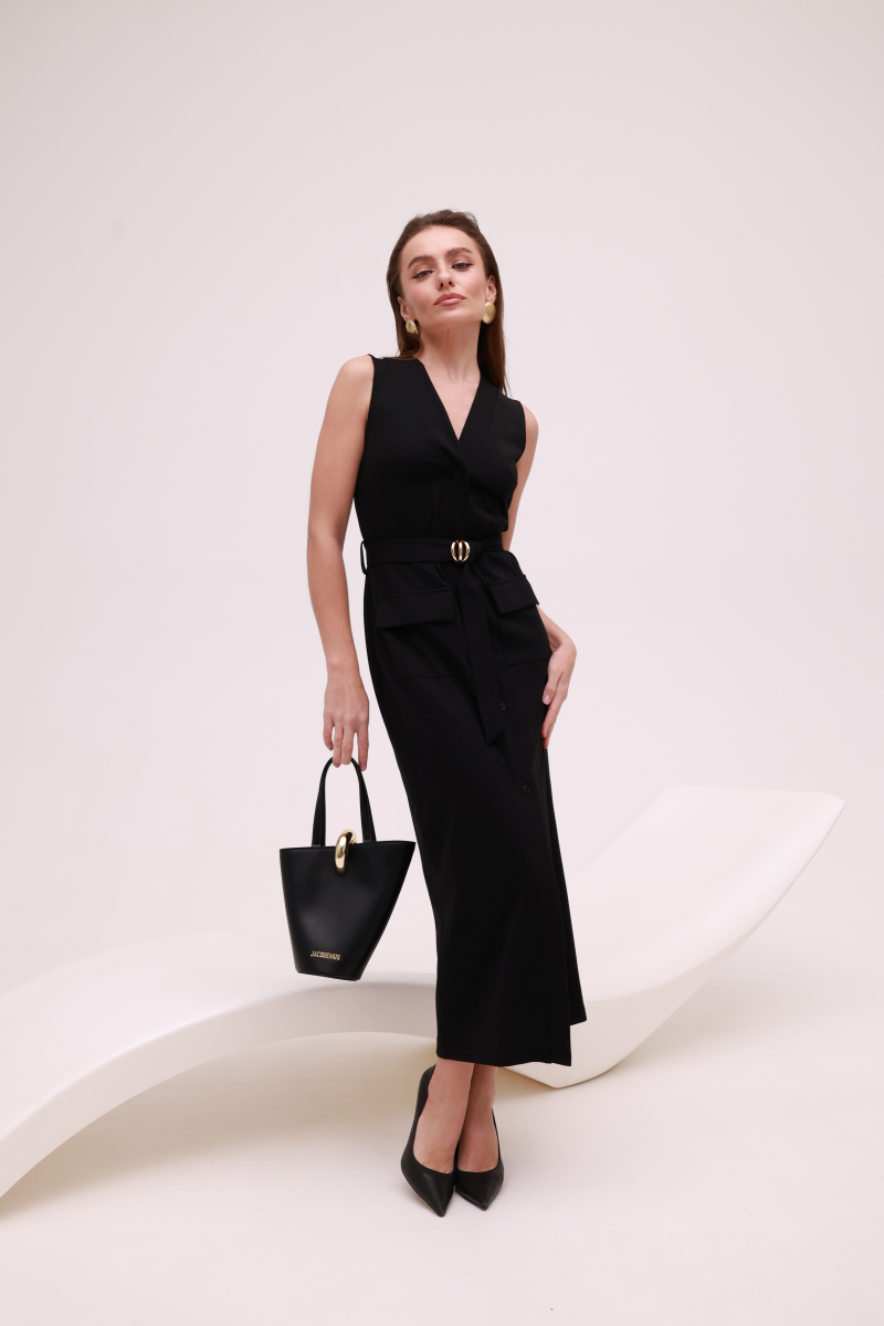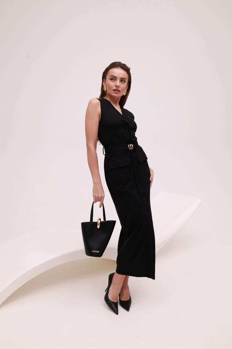 Лаконічний дизайн доповнений функціональними деталями, які надають сукні структури та міського настрою.