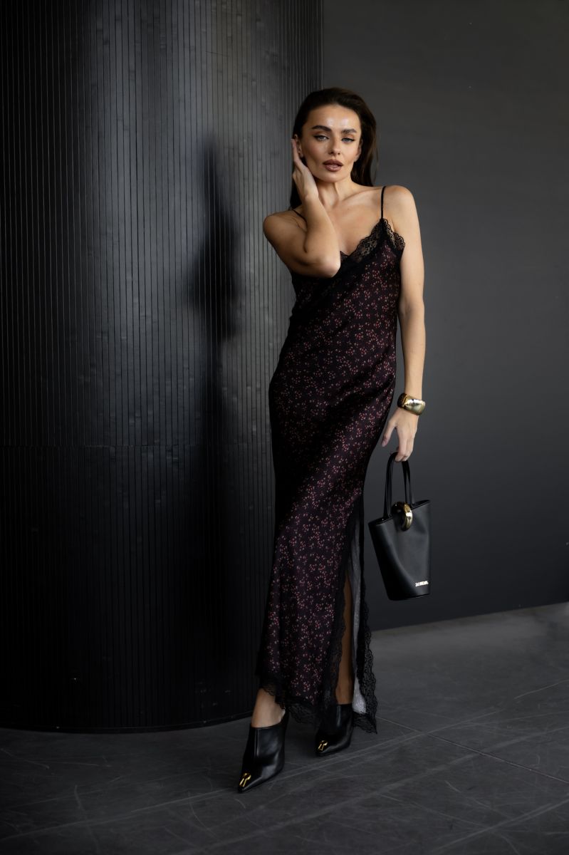 Легка, струмлива сукня-комбінація в стилі sleep dress від італійського бренду IMPERIAL. Має ніжний квітковий принт, мереживну обробку та елегантний крій, що ідеально підходить як для вечірніх виходів, так і для стильних буднів.