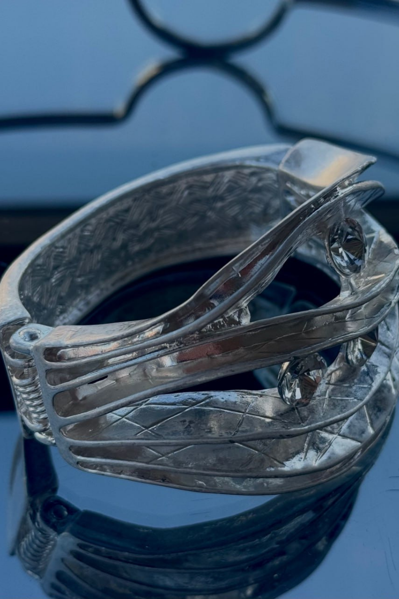 Смілива пластика металу, розкішний блиск кристалів, динаміка хвиль — цей браслет зчитується як сучасна інтерпретація гламуру