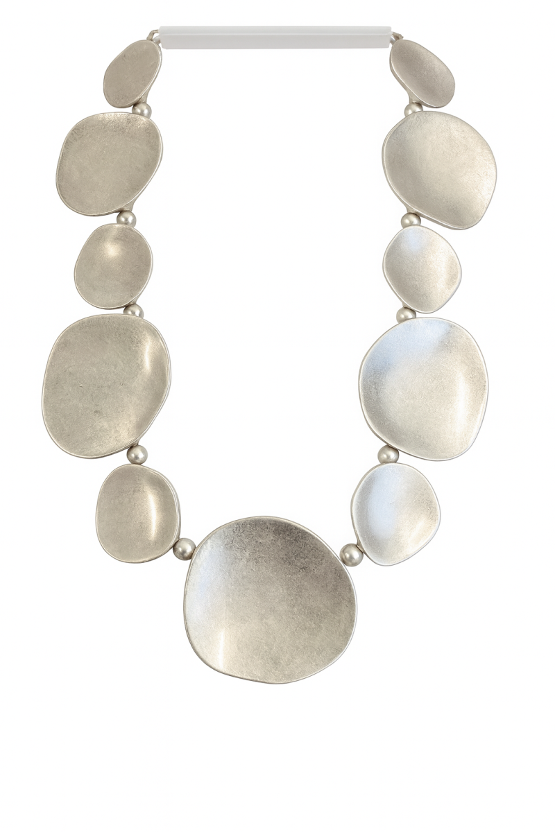 Кожен елемент кольє нагадує згладжений океаном камінь — природний, недосконалий, але абсолютно гармонійний.