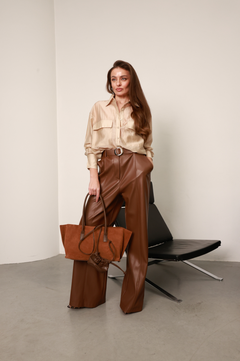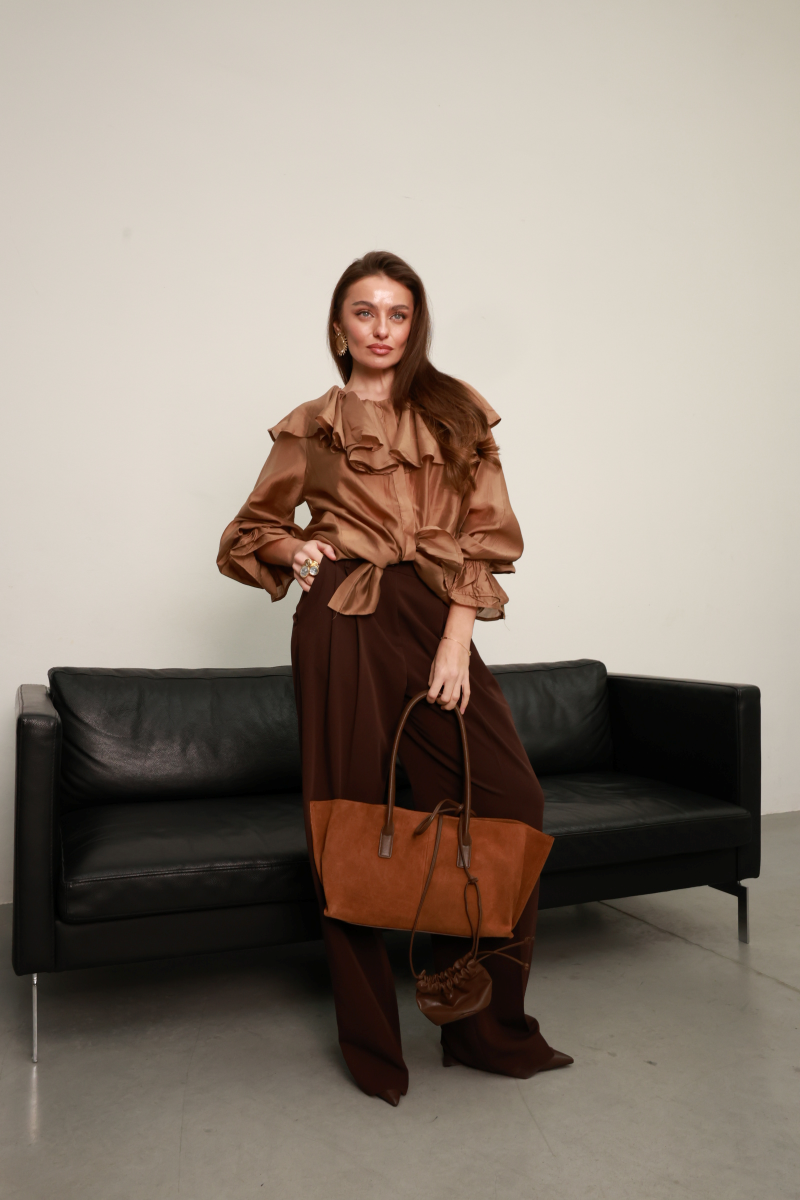 Ідеально поєднується з образами у теплій, нейтральній або монохромній палітрі.