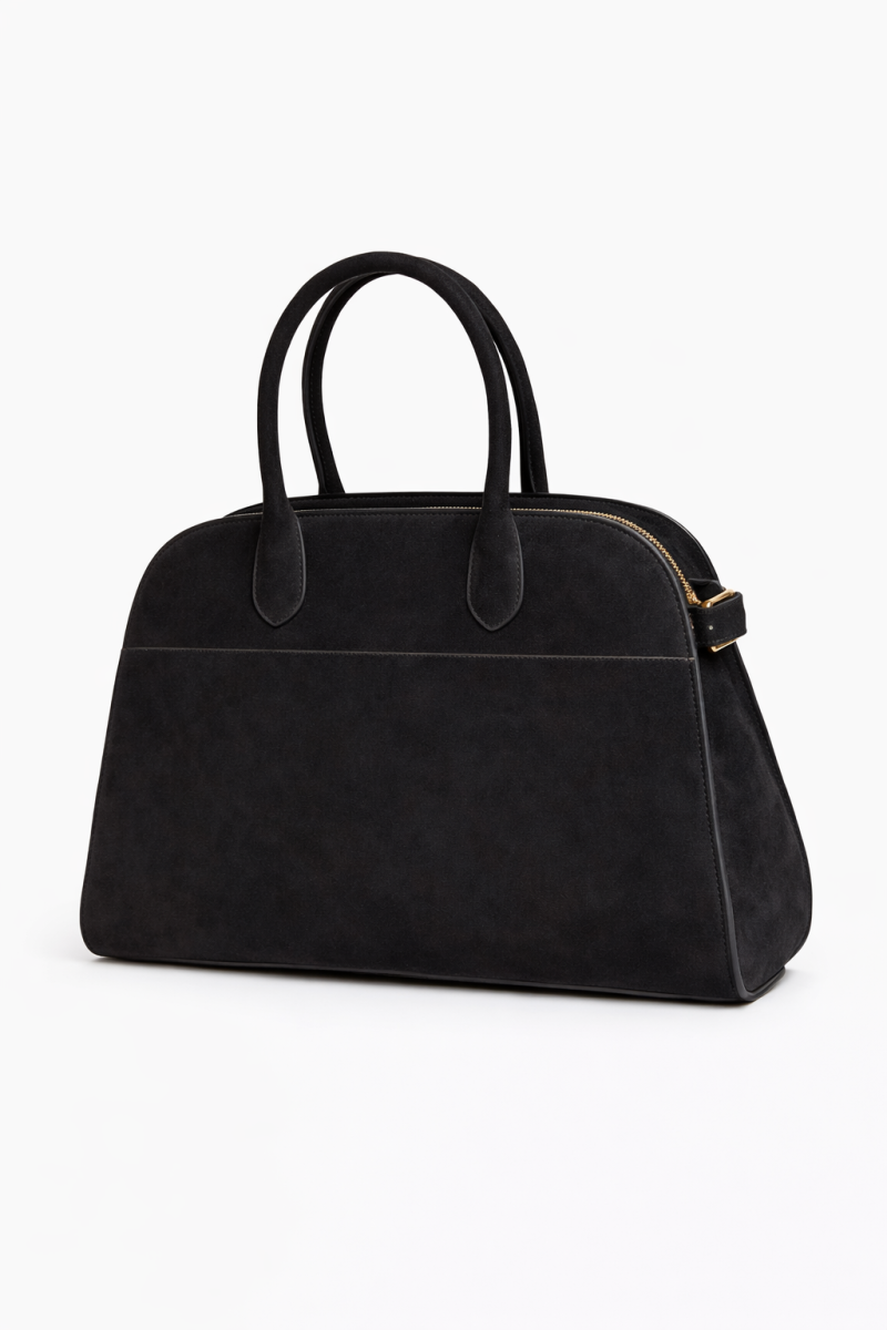 Сумка в стилі The Row з еко замші у класичному чорному кольорі — універсальний аксесуар для щоденних та ділових образів.