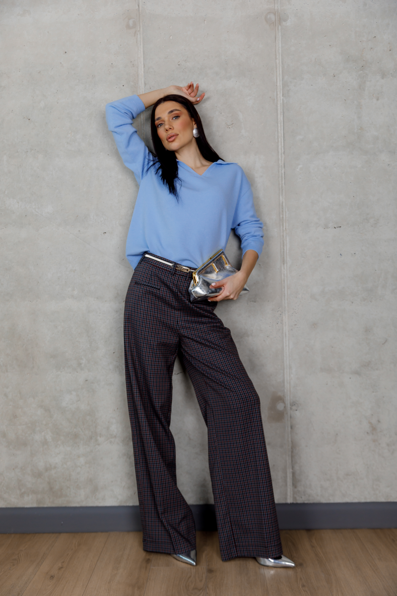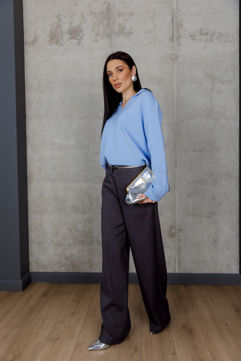 Елегантний светр у ніжному блакитному відтінку створює відчуття легкості та свіжості в образі.