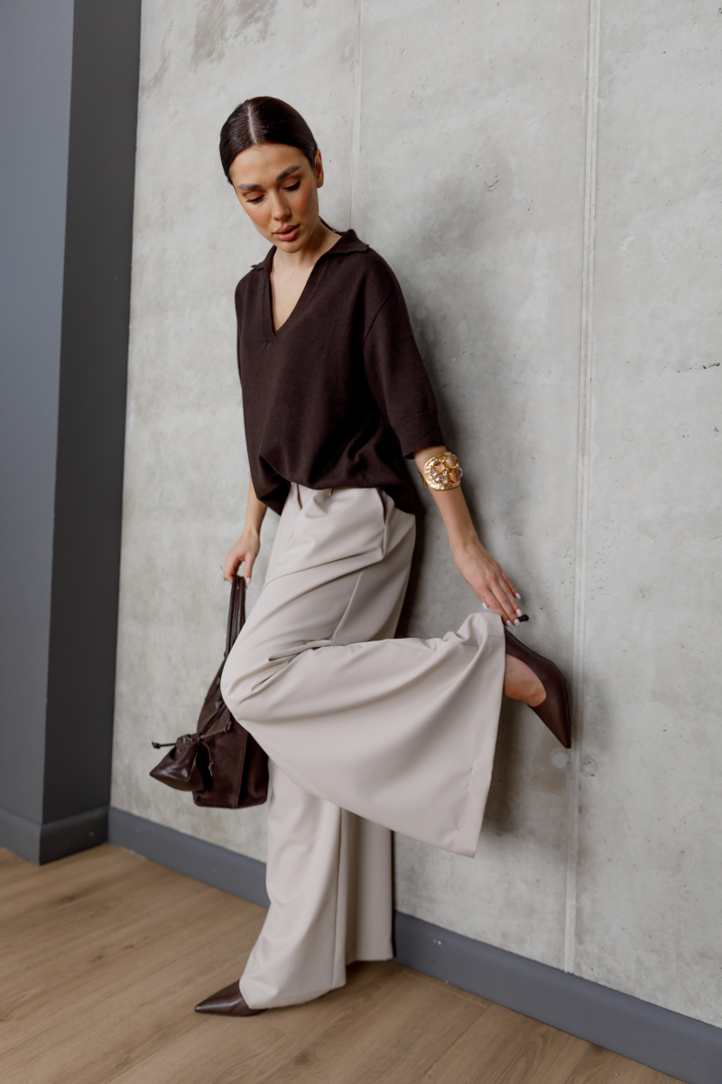 Светр гармонійно поєднується з класичними брюками, спідницями або денімом, підходячи як для повсякденних, так і для більш вишуканих образів.