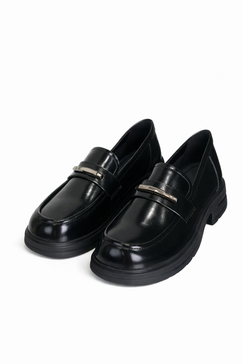 Чорні лофери, що сяють глянцем, — як подих сучасної елегантності. Їхня плавна лінія, акцентований металевий блиск і впевнений силует створюють образ жінки, яка володіє кожним своїм кроком.