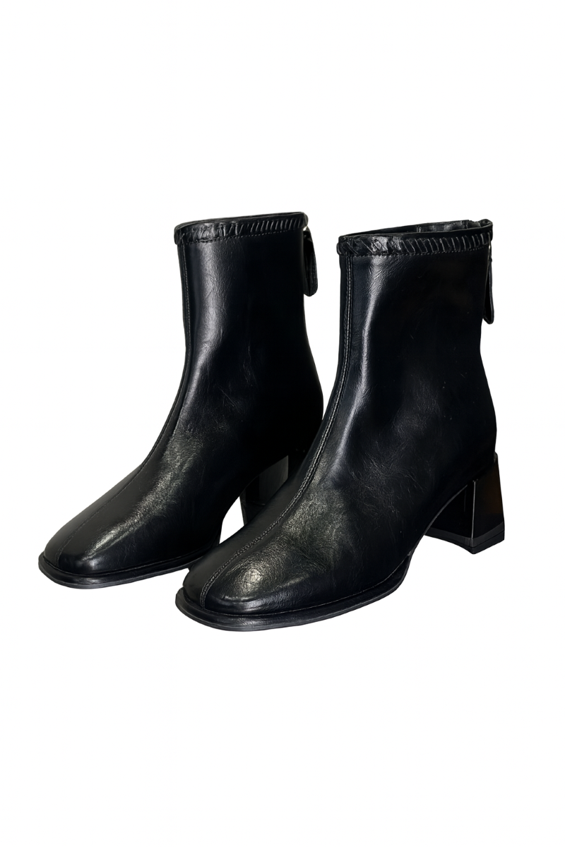 Ці чорні шкіряні черевики — втілення стриманої розкоші, де кожна лінія говорить про витонченість. М’яка гладка шкіра, акуратний силует і стійкий підбор створюють образ, що огортає впевненістю та жіночністю з першого кроку.