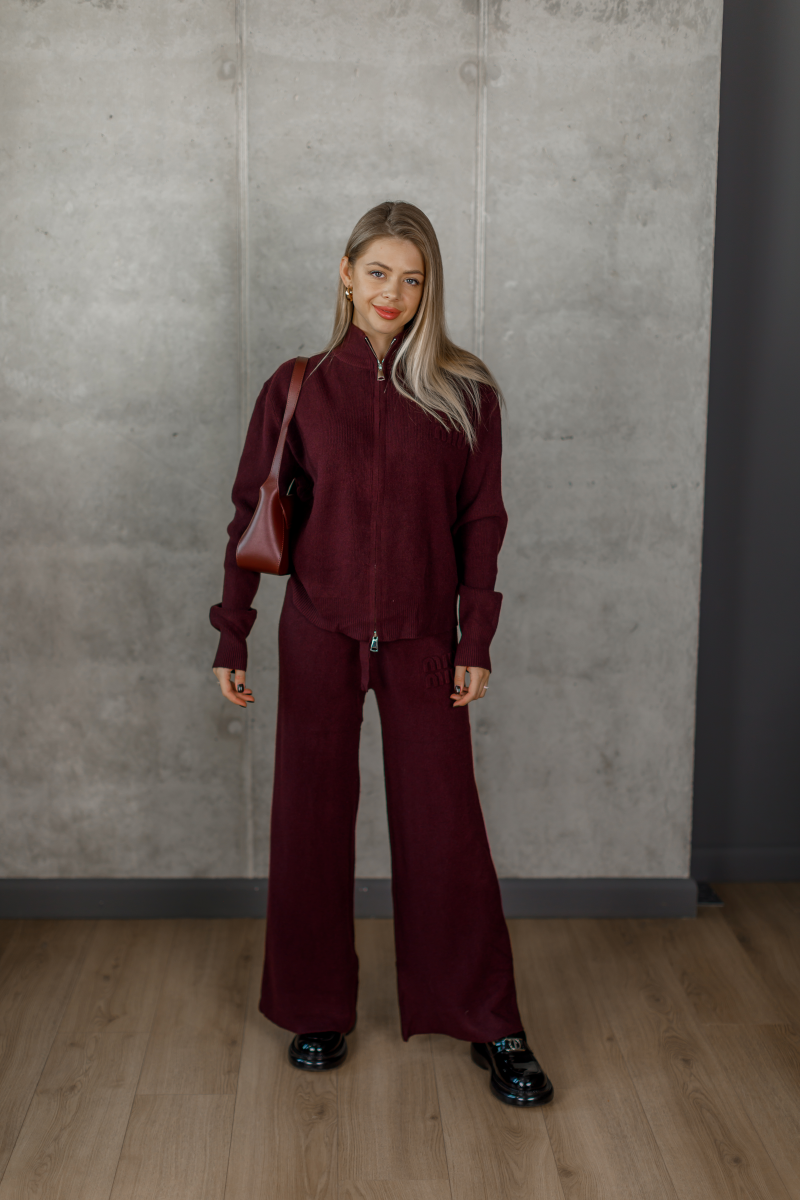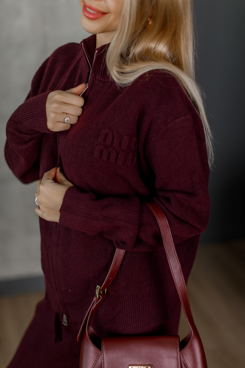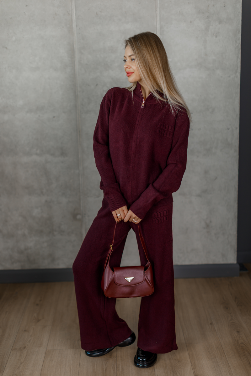 Бордовий костюм преміум якості з м’якого трикотажу в стилі Miu Miu.