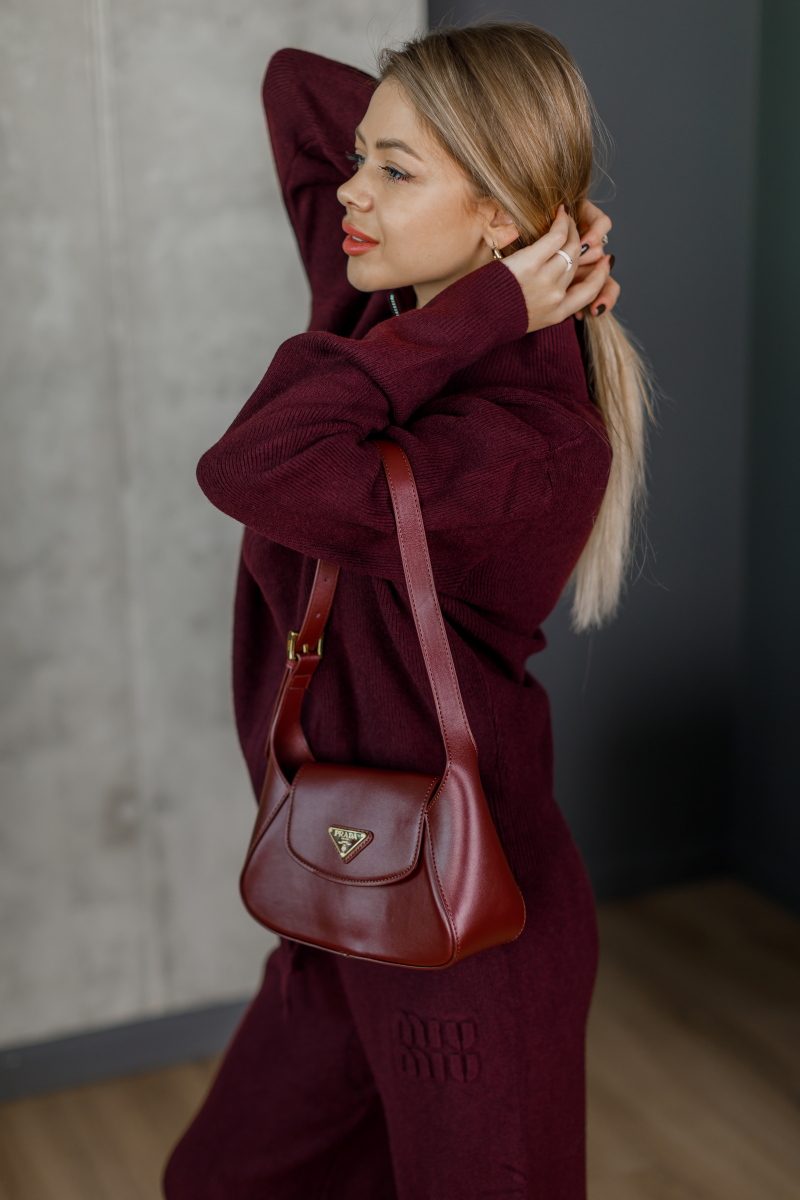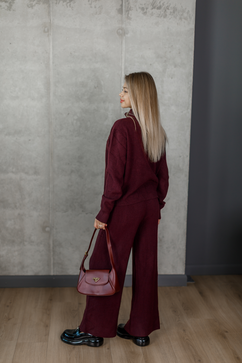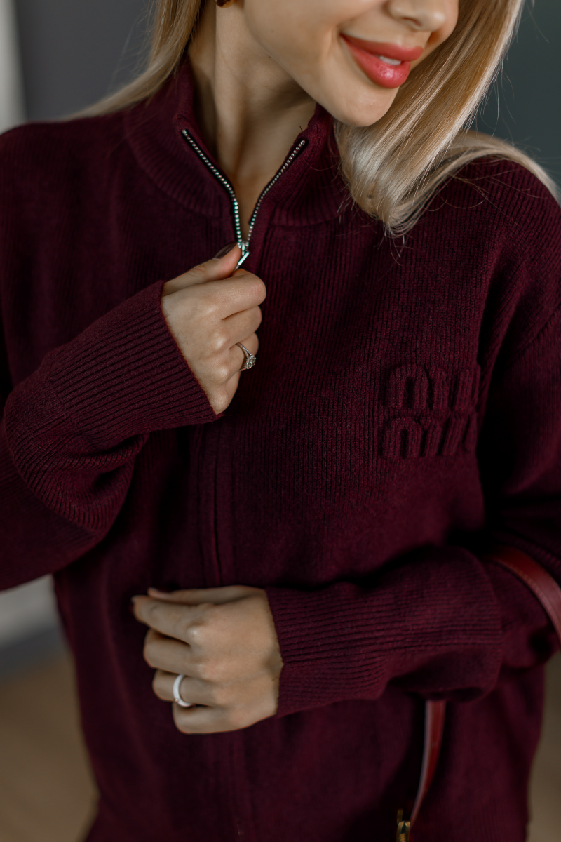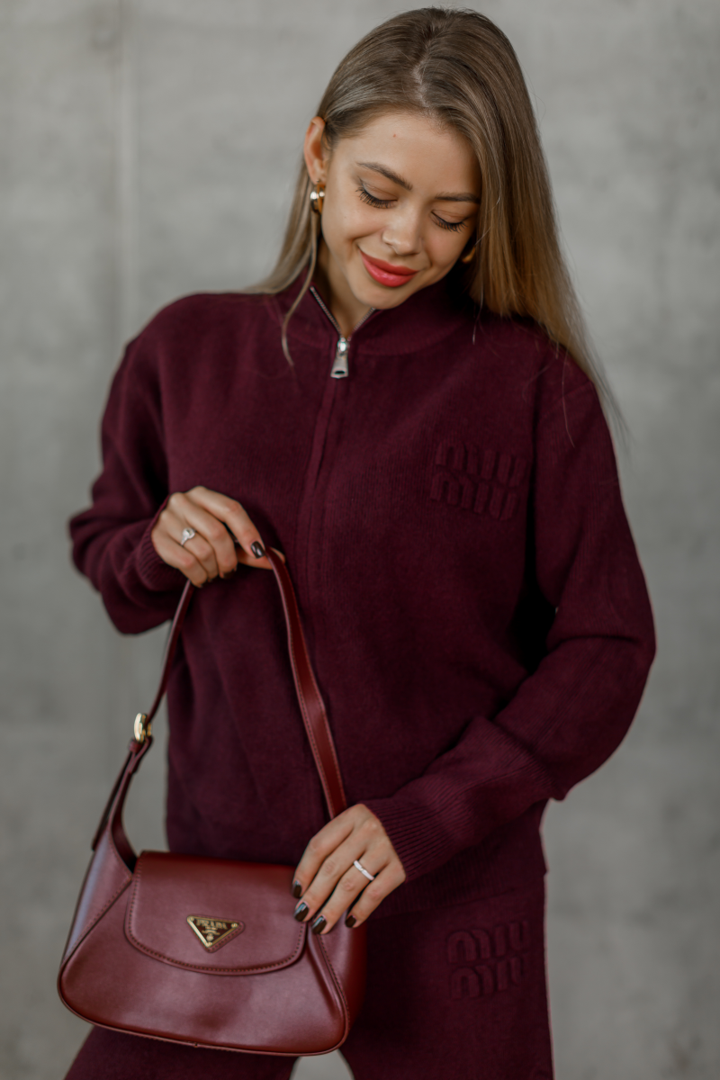 Бордовий костюм преміум якості з м’якого трикотажу в стилі Miu Miu.