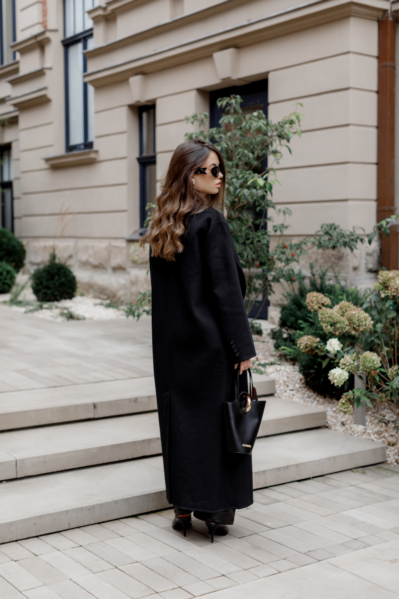 Пальто виготовлене з високояксних матеріалів в склад входить натуральна шерсть, це пальто подарує тепло, комфорт і стиль навіть у найхолодніші дні. Глибокий чорний колір додає образу стриманої вишуканості. Ідеально поєднується як з діловим гардеробом, так і з повсякденними образами.
