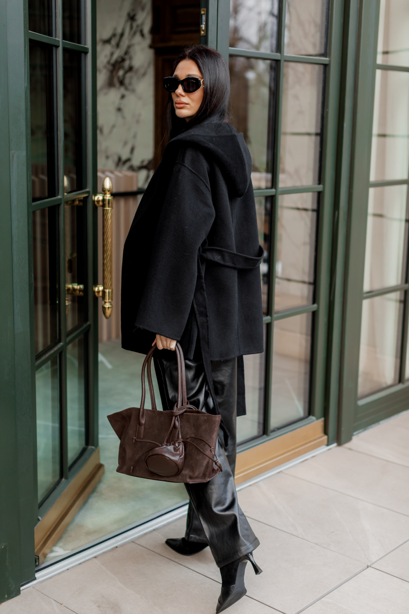 Стильне пальто середньої довжини з капюшоном, яке поєднує комфорт, тепло та елегантність. Французький дизайн вирізняється вишуканими лініями та зручним кроєм, що підкреслює фігуру завдяки поясу на талії.