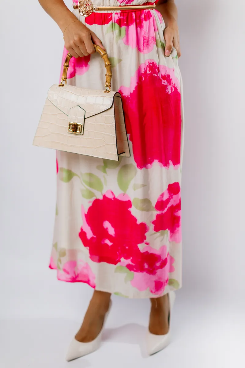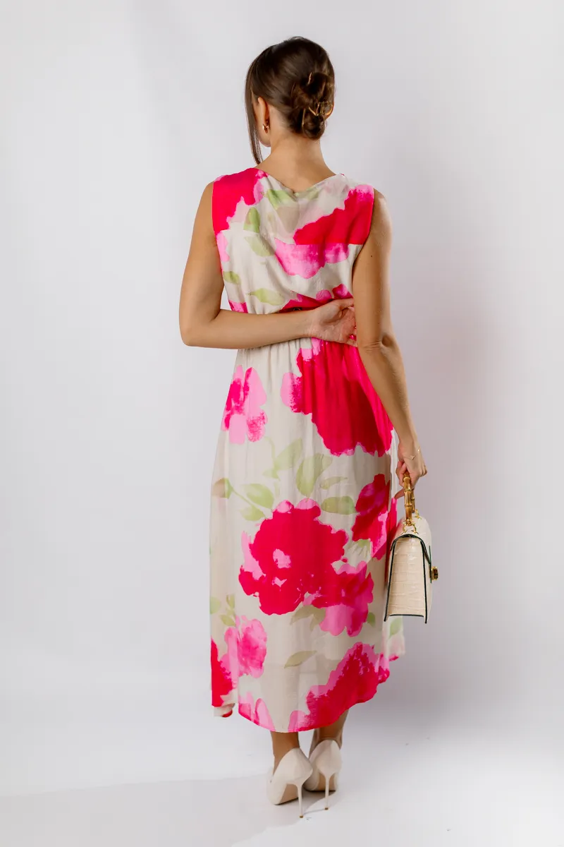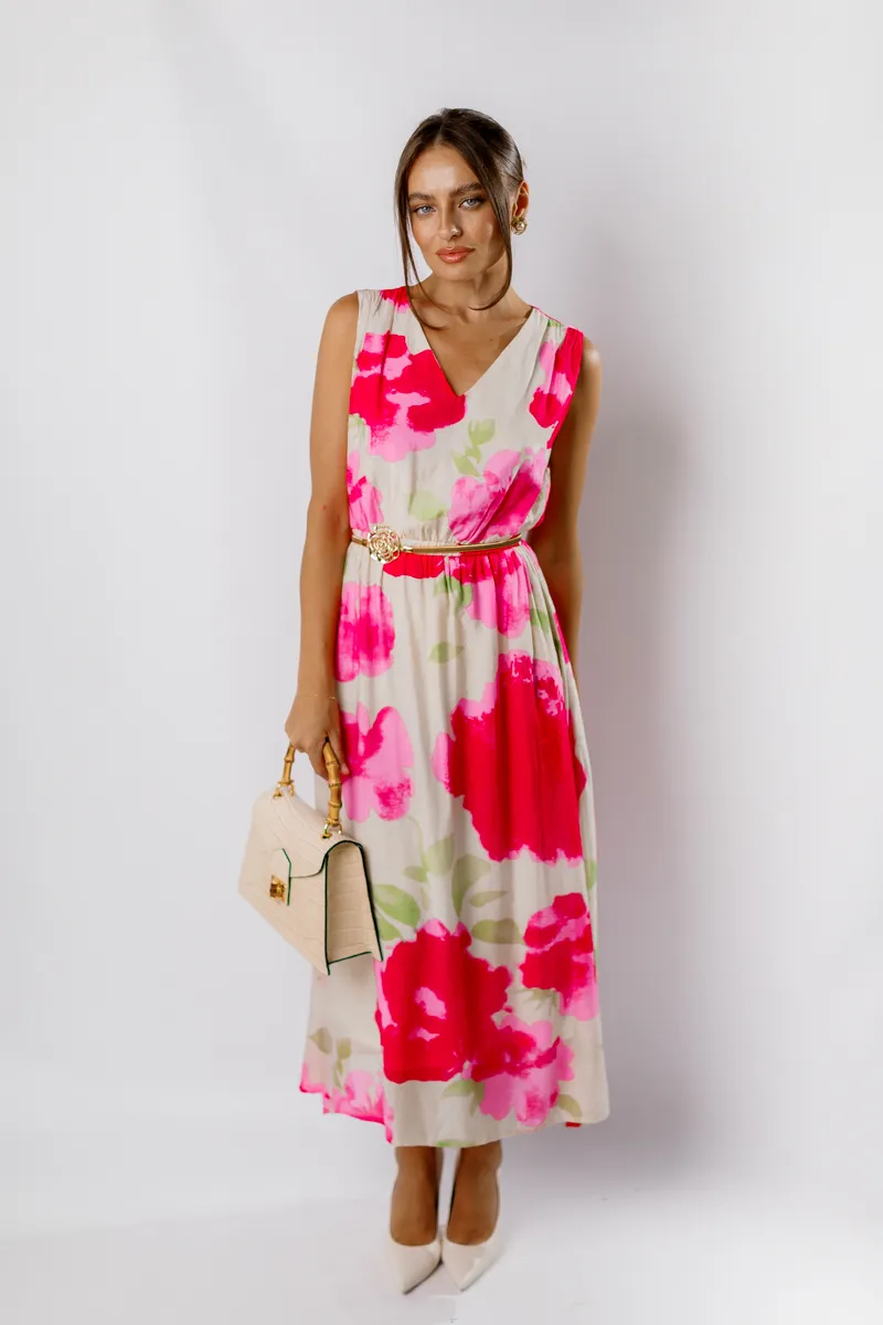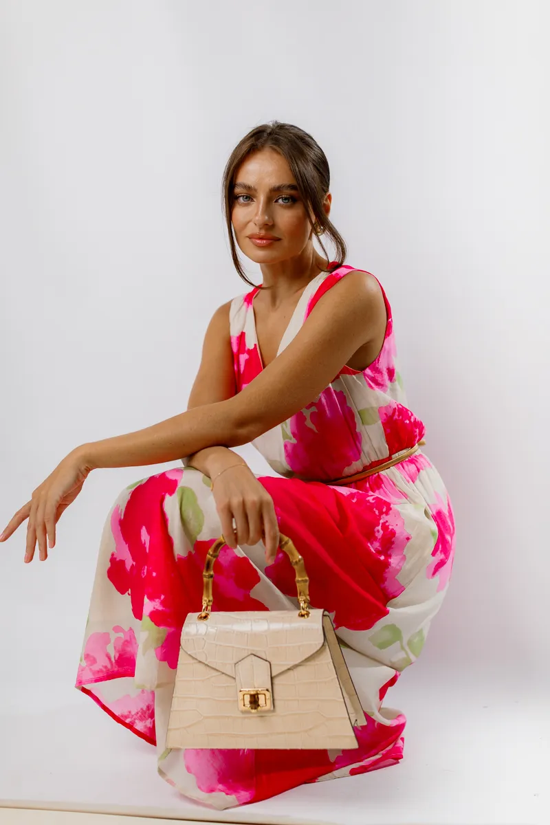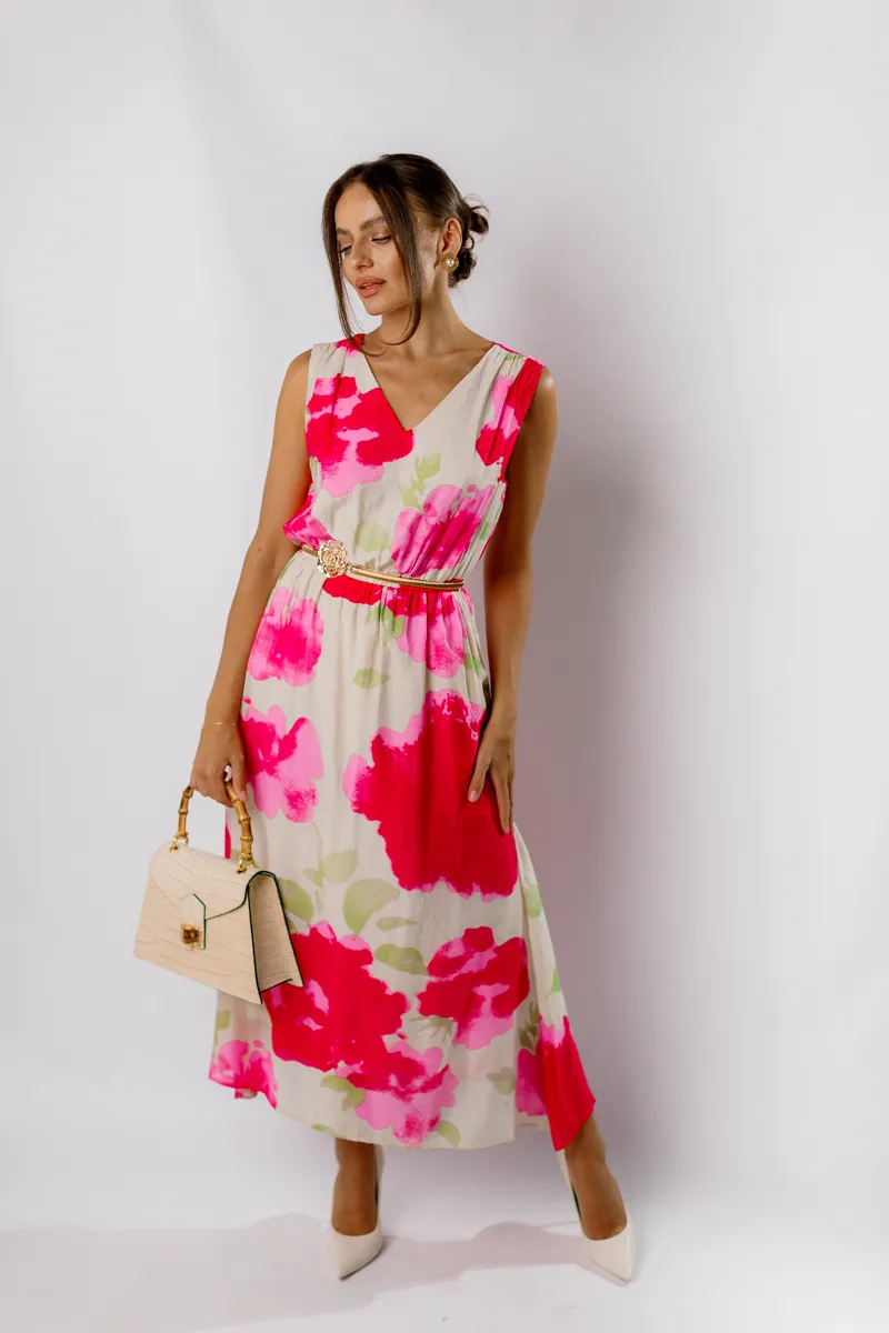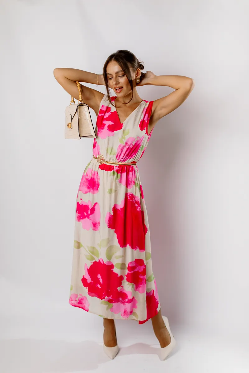 Вишукана сукня максі від французького виробника, виготовлена з 100% натуральної бавовни. Вільний крій забезпечує максимальний комфорт та свободу рухів, що робить цю сукню ідеальною для літніх днів. Стильний квітковий принт додає романтичності та жіночності, а бежевий колір надає сукні елегантності та універсальності. Ця сукня стане чудовим вибором як для повсякденного носіння, так і для особливих подій.