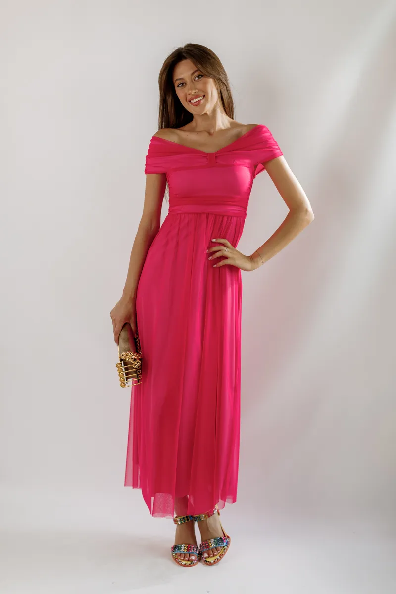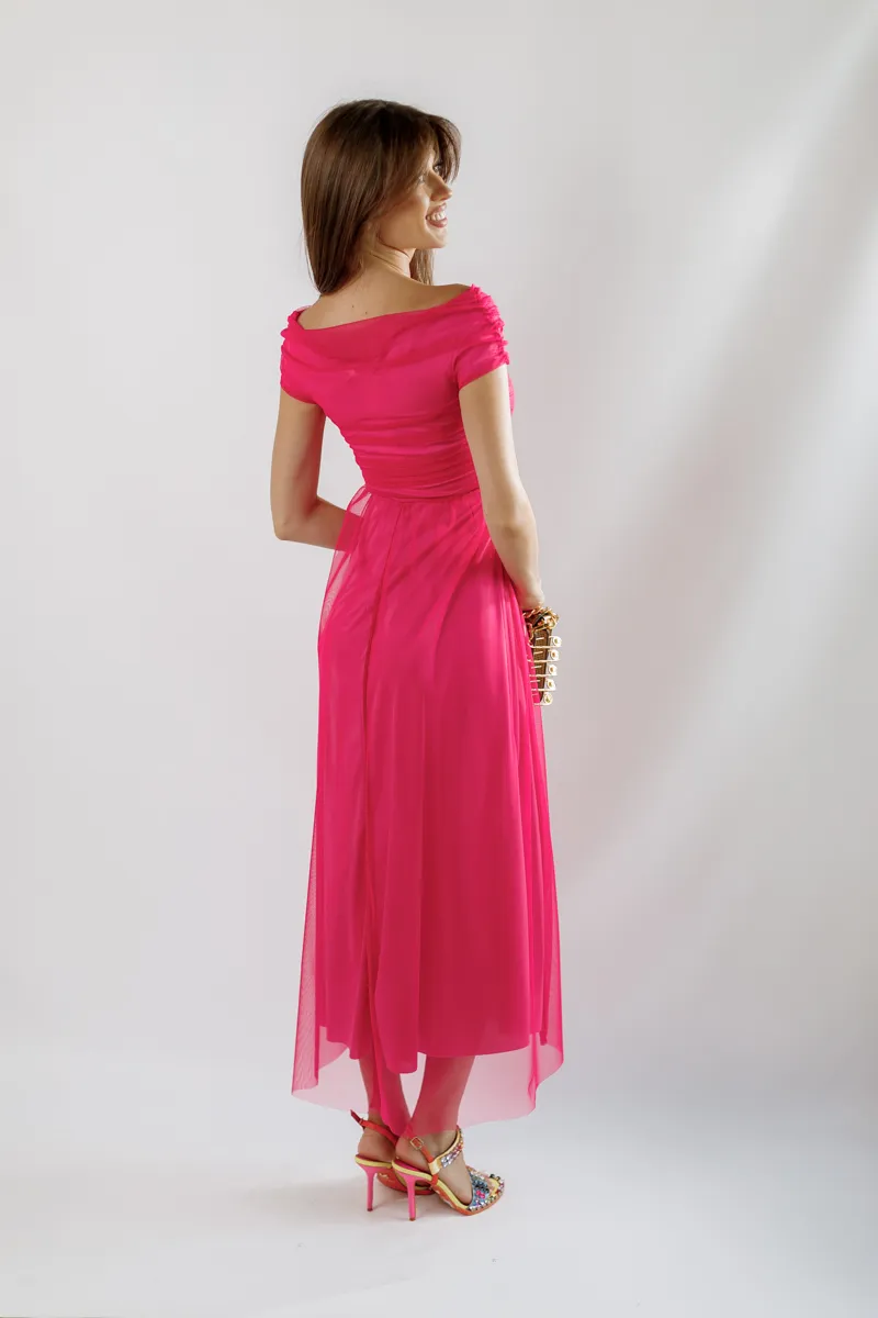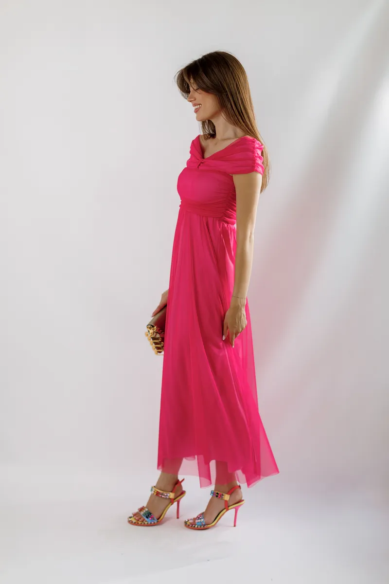 Ця розкішна міді-сукня від італійського бренду Rinascimento виготовлена з високоякісного італійського фатину, що забезпечує легкість та повітряність вашого образу. Сукня має елегантний рожевий колір, який надає жіночності та ніжності.