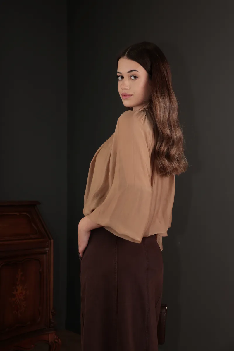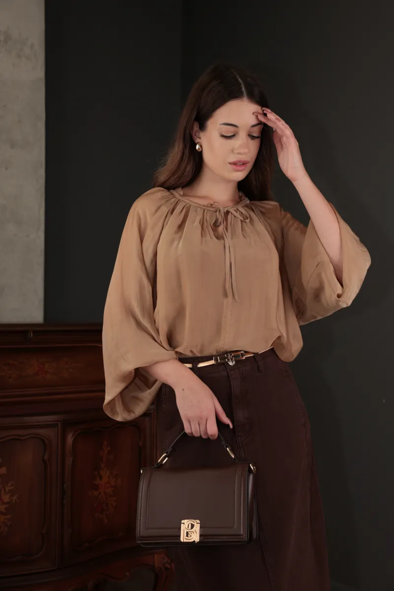 Шовковиста блуза з повітряними рукавами та зав’язкою біля горловини