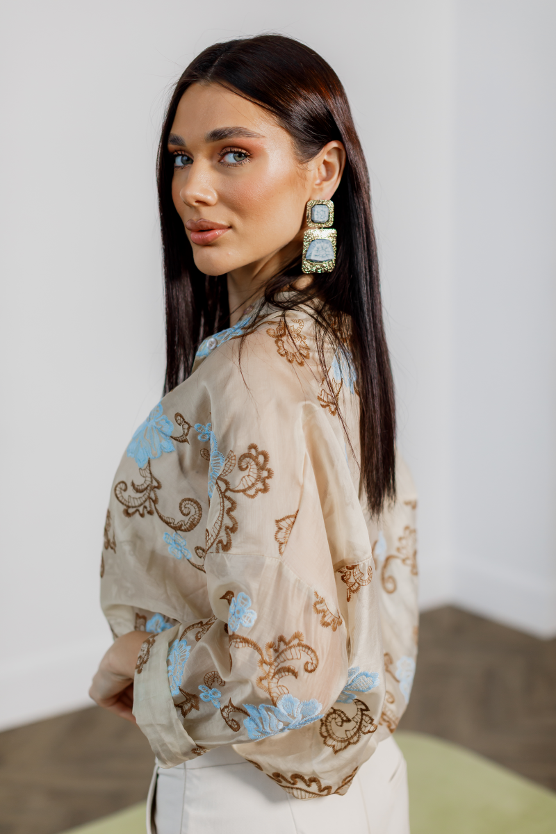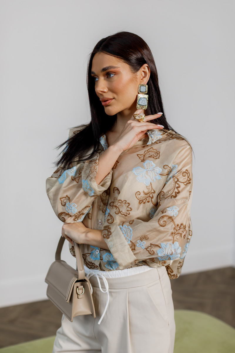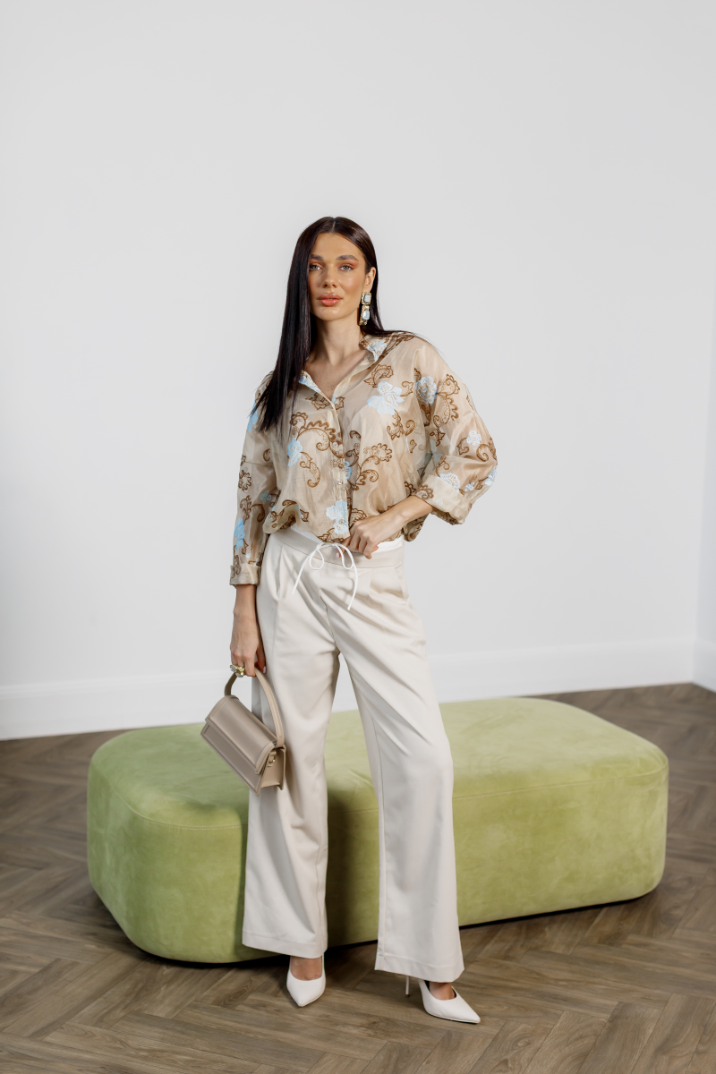 Легка блуза з делікатним квітковим орнаментом створює жіночний та витончений образ.