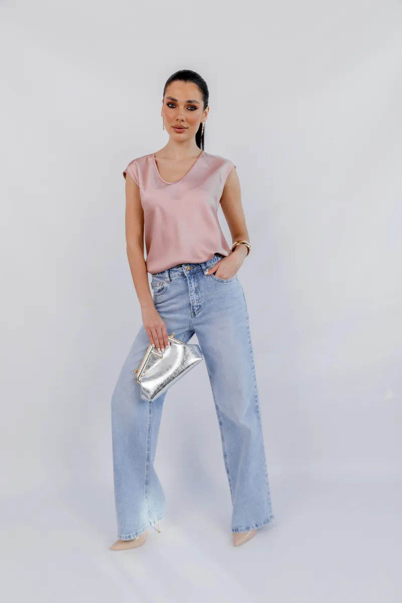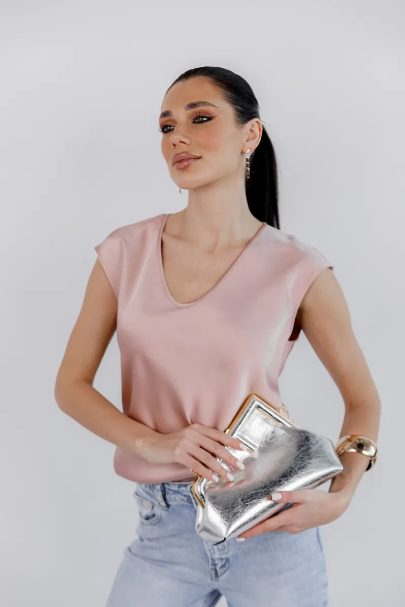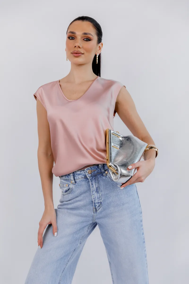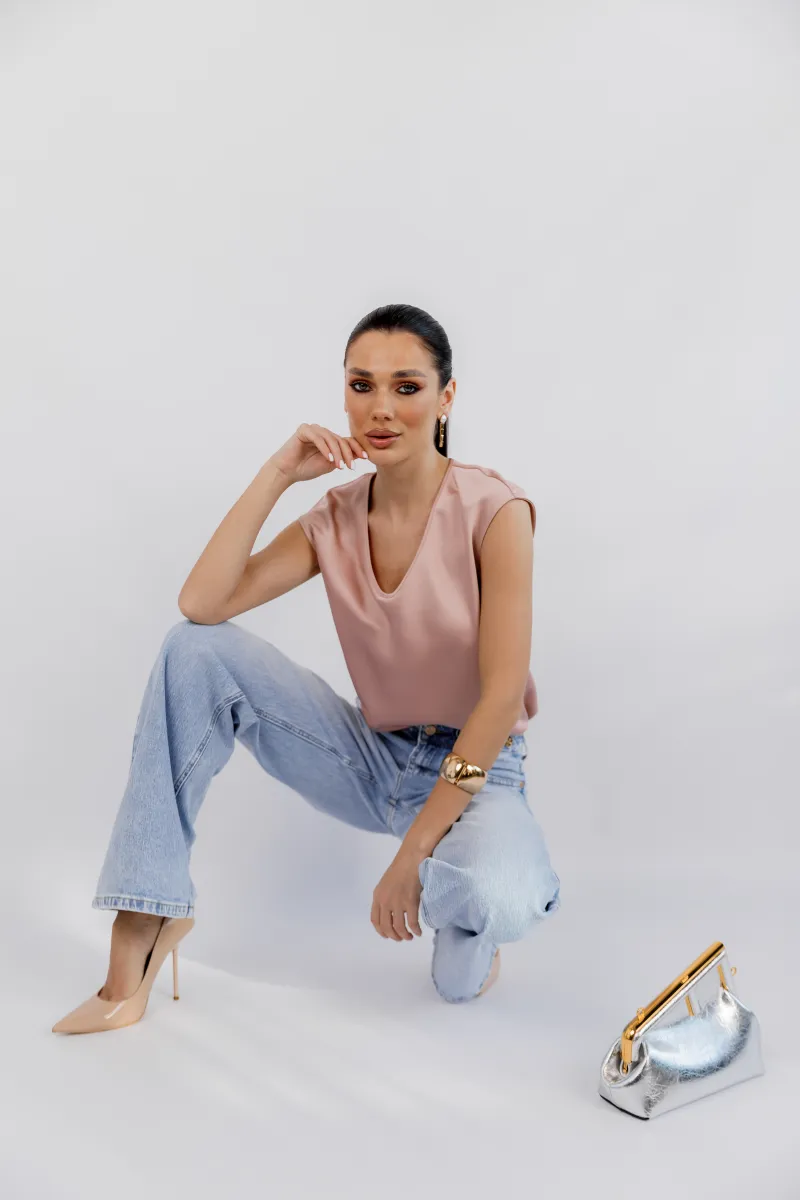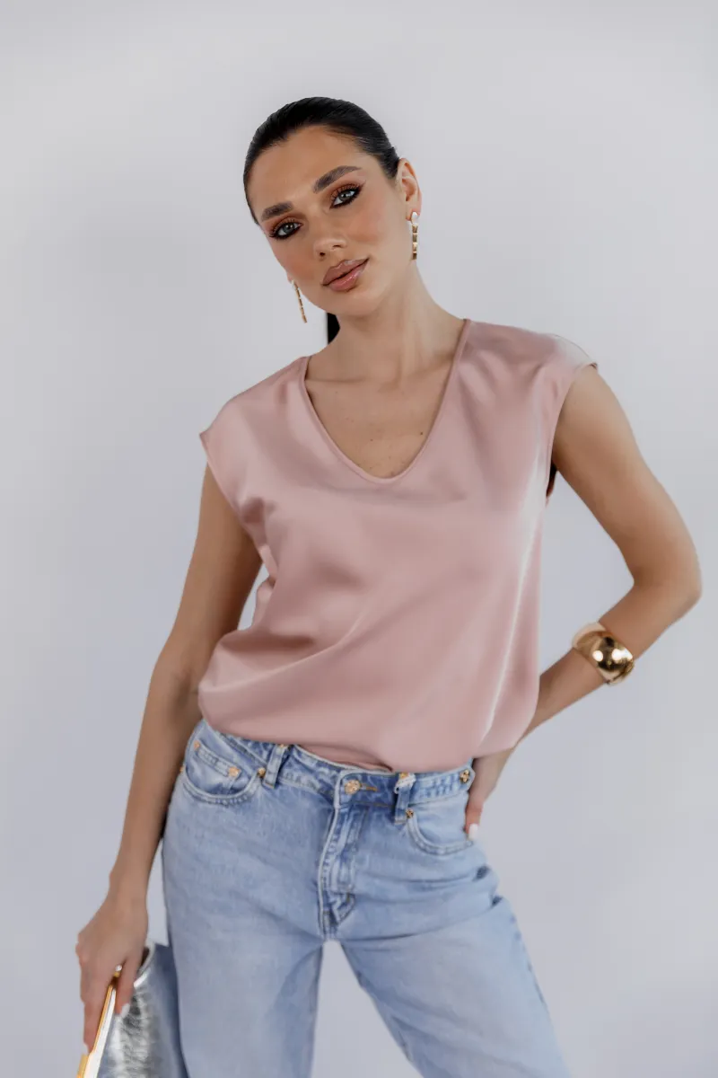 Ніжна сатинова блуза у витонченому пудровому відтінку — ідеальна база для жіночних та елегантних образів