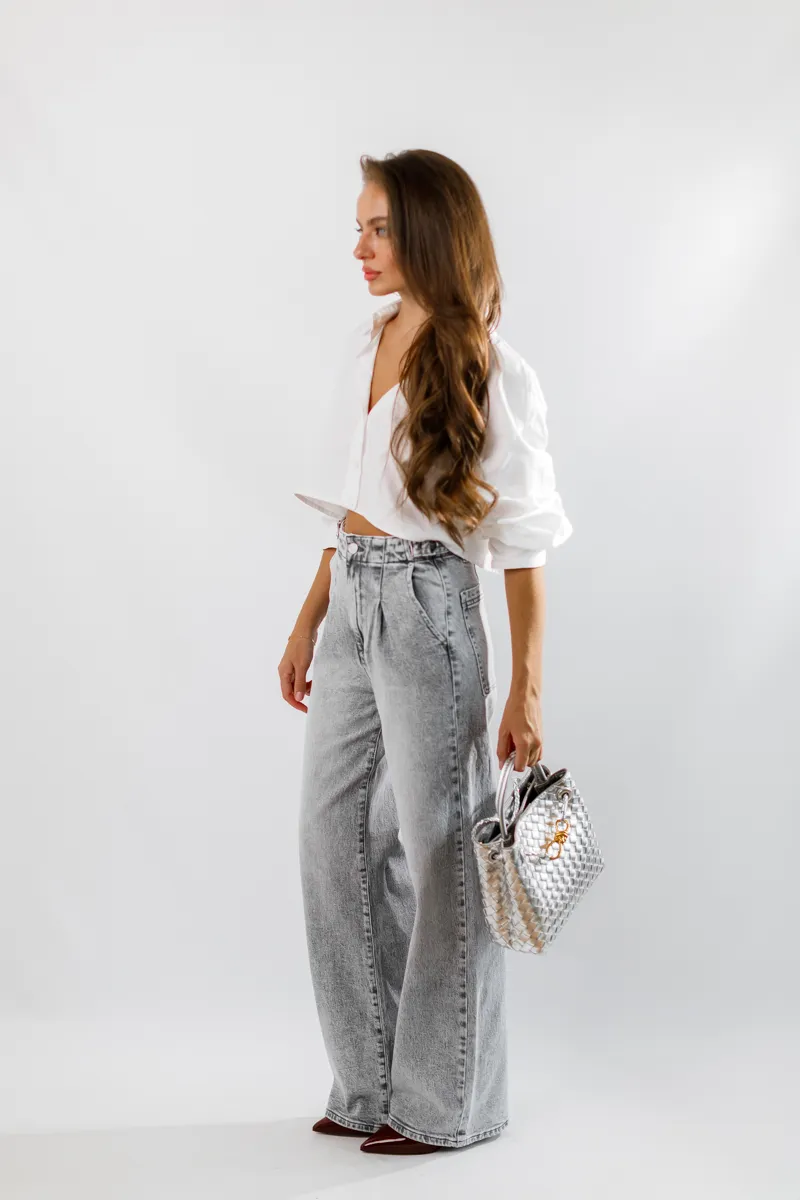 - Колір: Світлий сірий денім — стильний і універсальний відтінок.