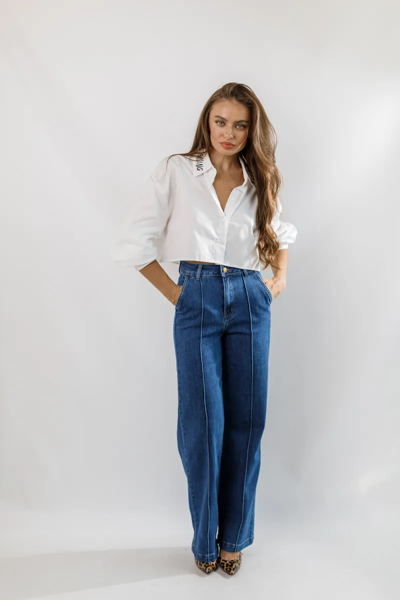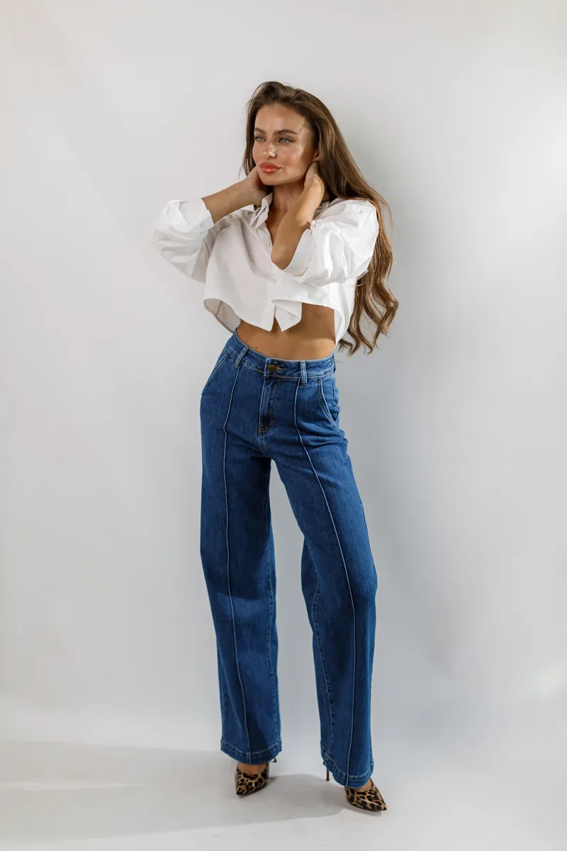 - Колір: Класичний синій денім — універсальний колір, що легко комбінується з будь-яким одягом.
