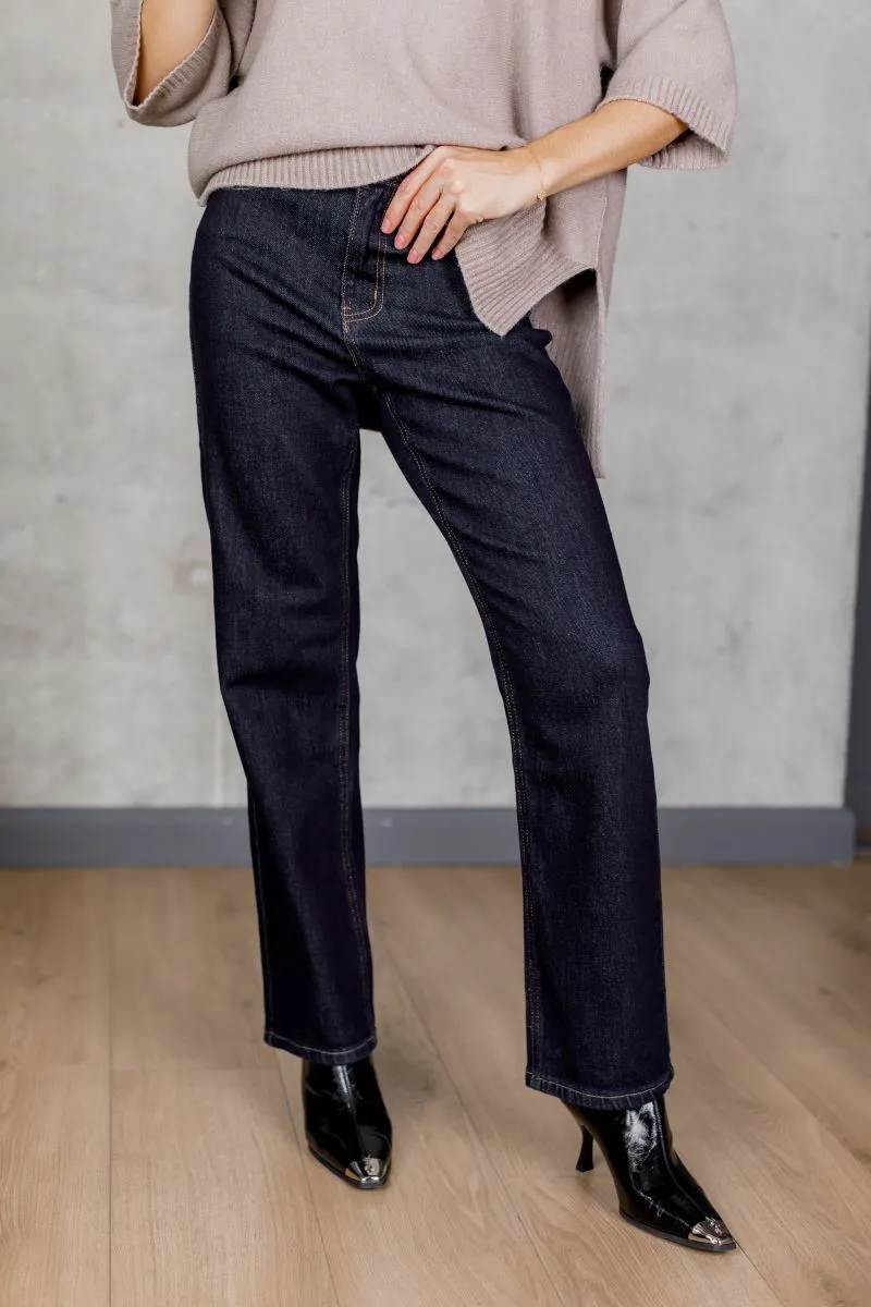 Елегантні джинси прямого крою з щільного темно-синього деніму.