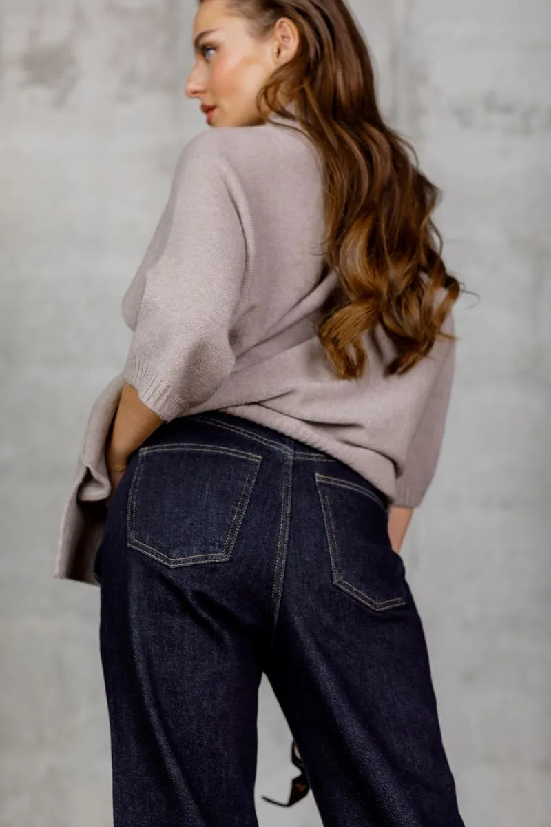 Класичні темно-сині джинси з високою посадкою та прямим силуетом.