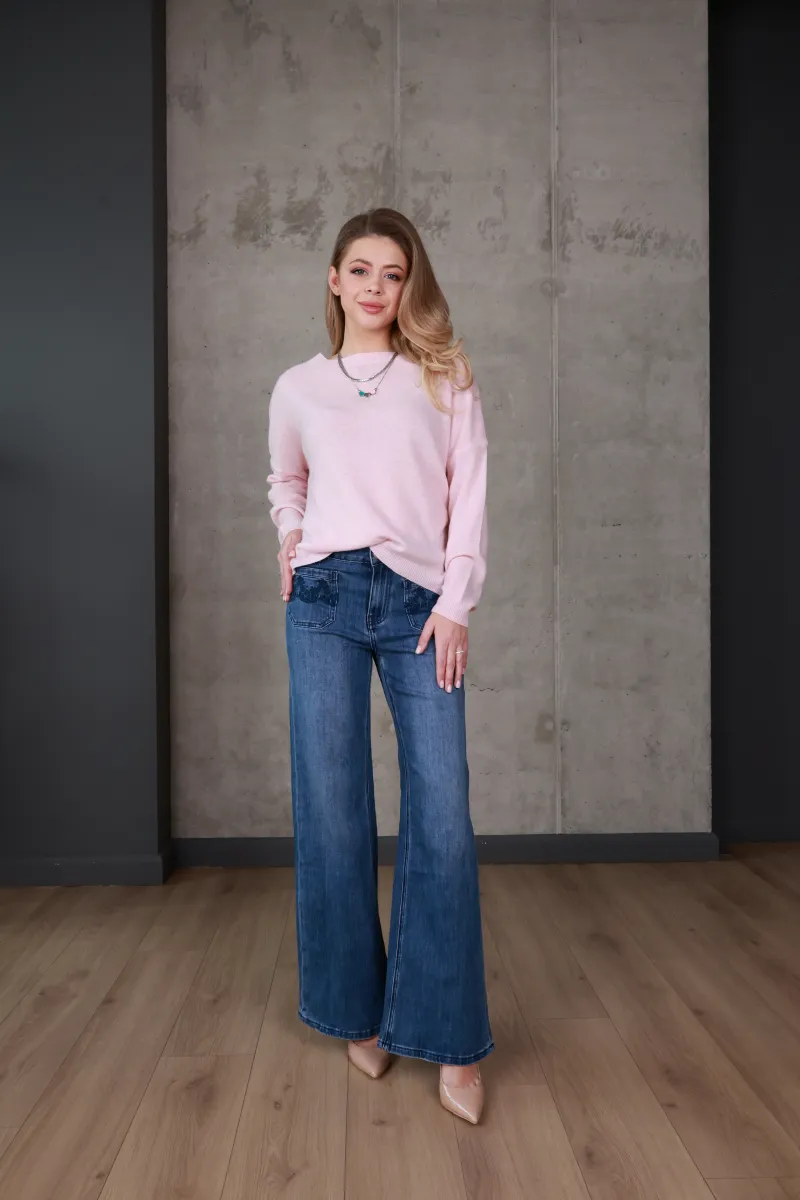 Джинси легко поєднуються як з об’ємними светрами, так і з лаконічними топами чи блузами, підходять для повсякденних і стильних міських образів
