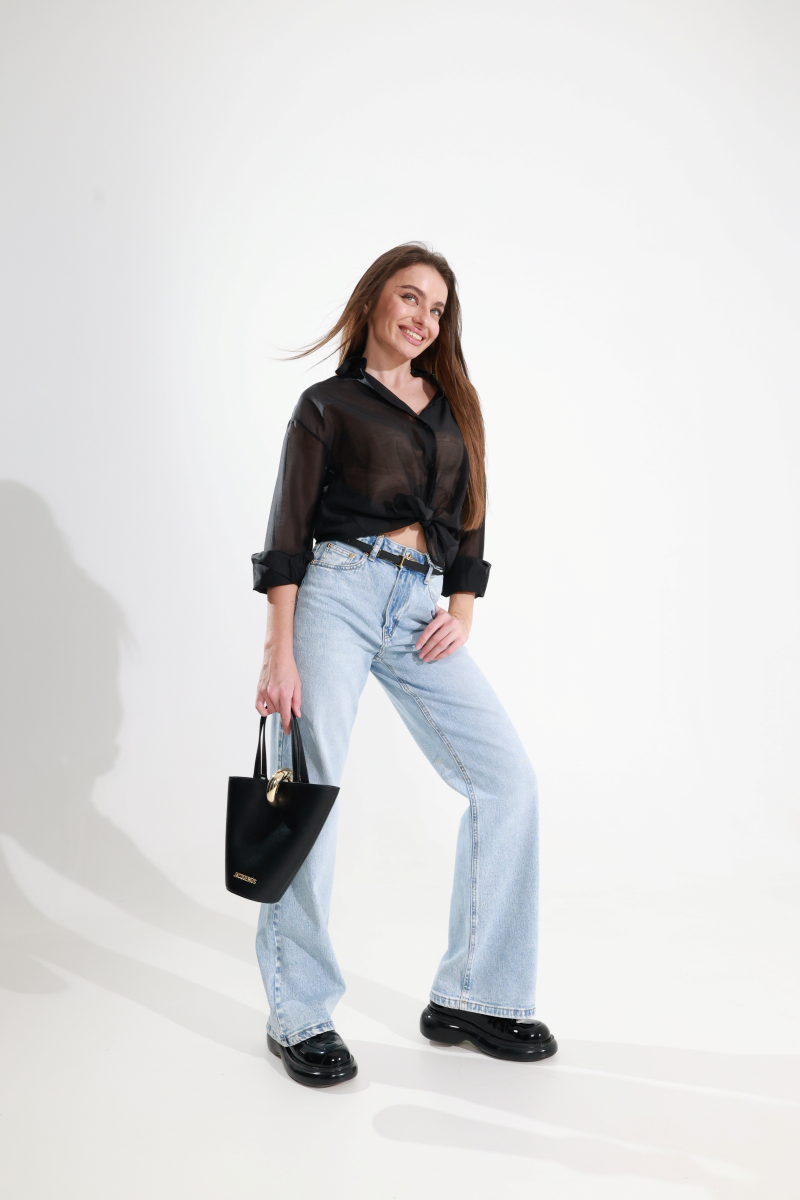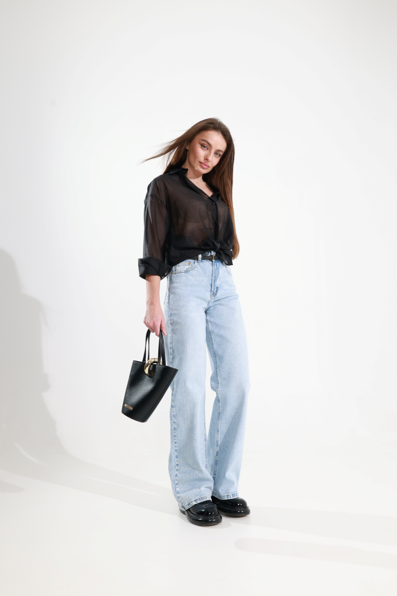 Модель легко комбінується з базовими сорочками, напівпрозорими блузами або трикотажем — від мінімалістичних casual-образів до більш акцентних поєднань.