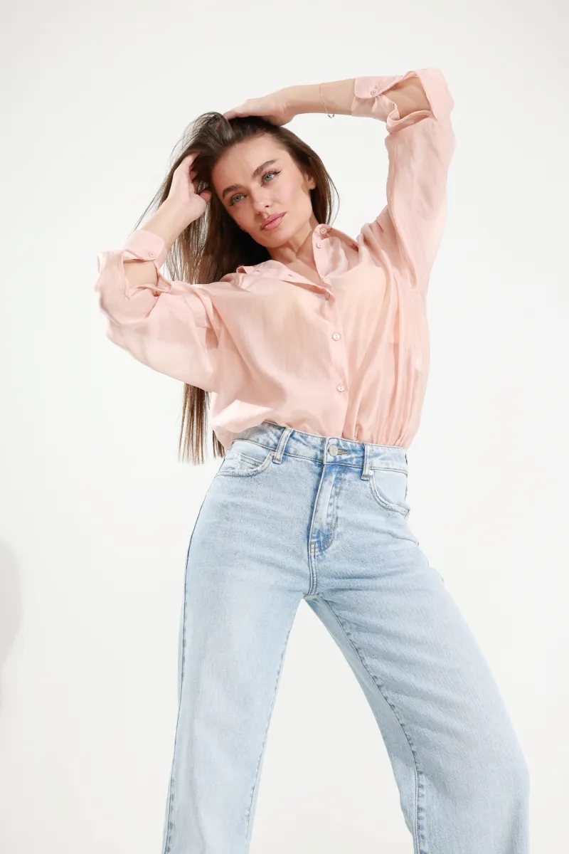 Світло-блакитні джинси wide leg — універсальна модель із високою посадкою, що підкреслює талію та формує витягнутий силует.