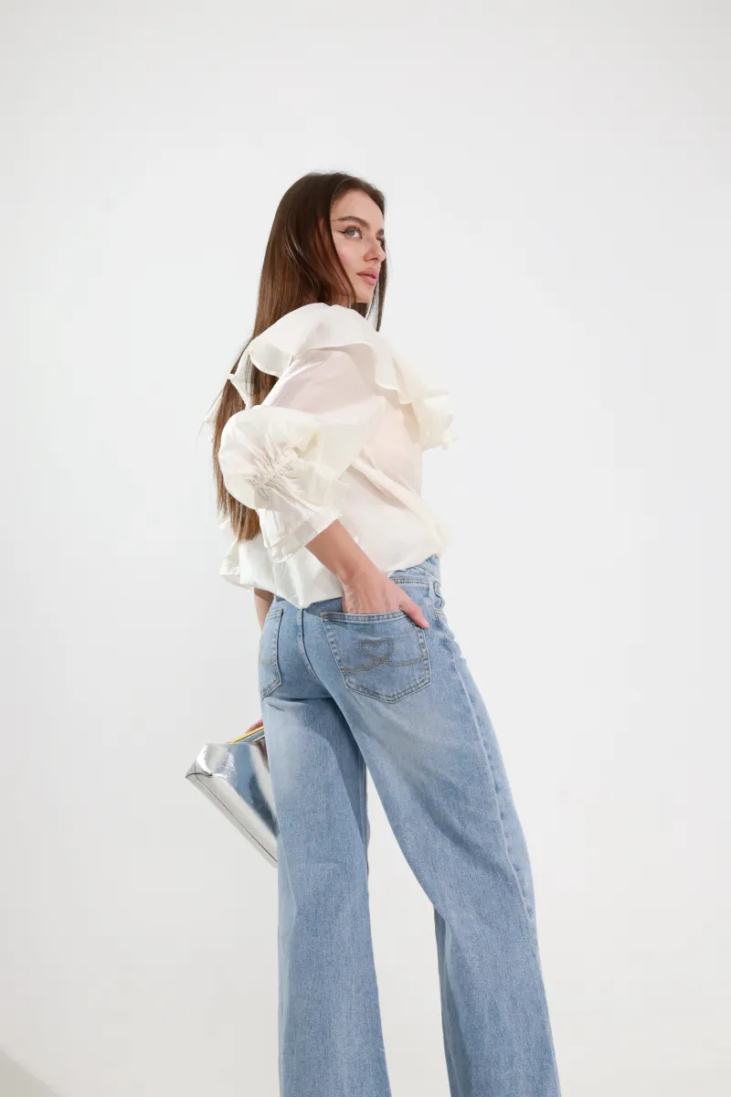 М’який денім приємний до тіла, добре тримає форму та ідеально поєднується як з романтичними блузами, так і з базовими сорочками або жакетами.