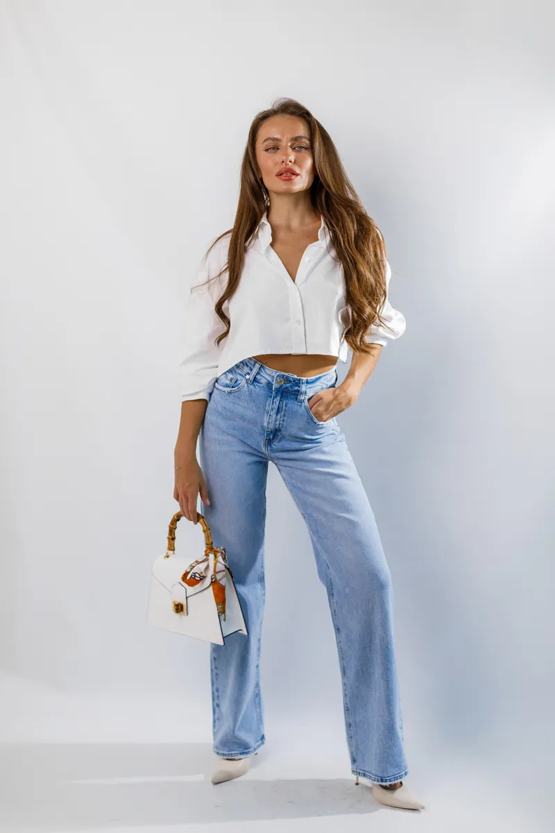 - Колір: Світлий блакитний денім, що додає свіжості та легкості образу.