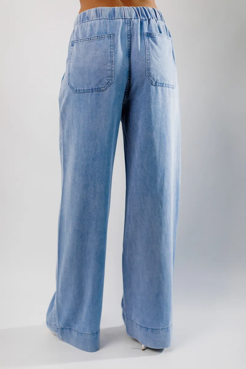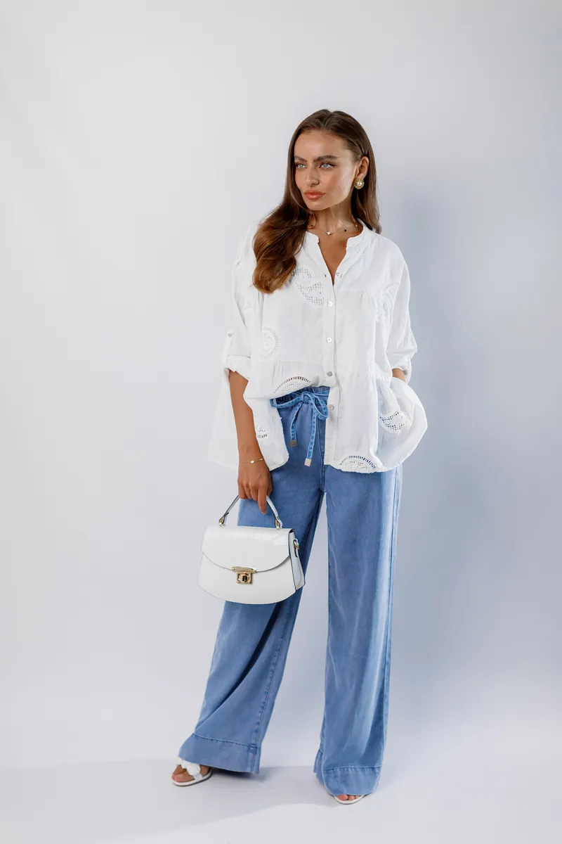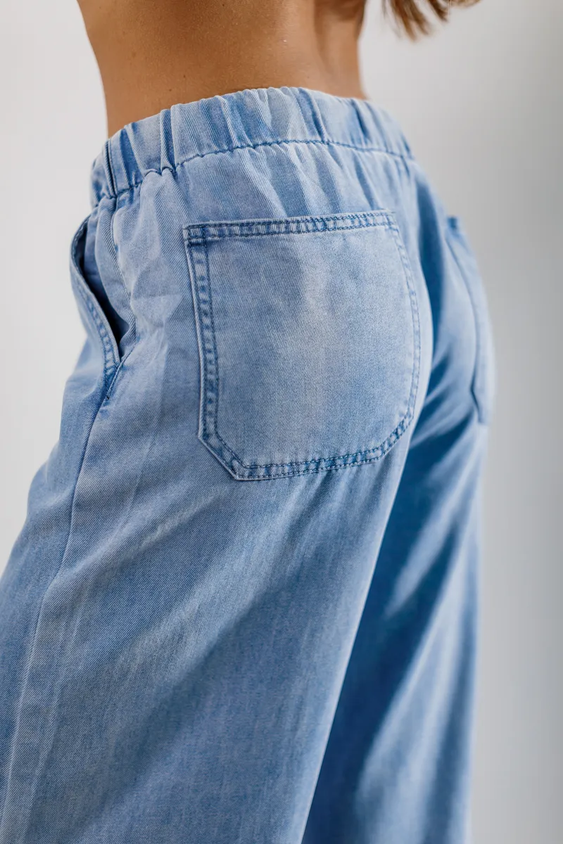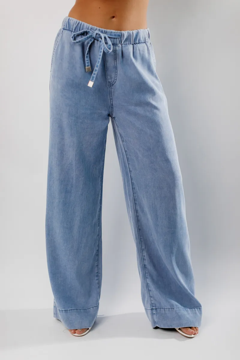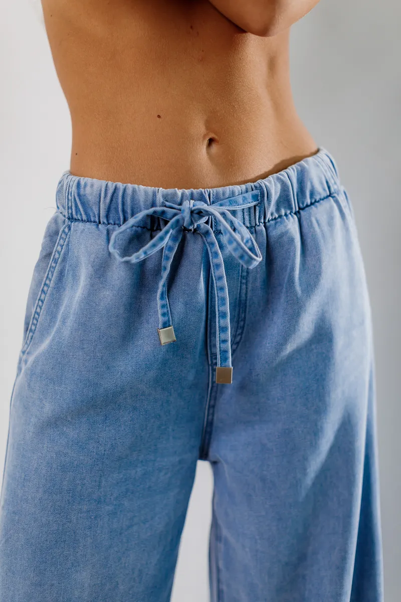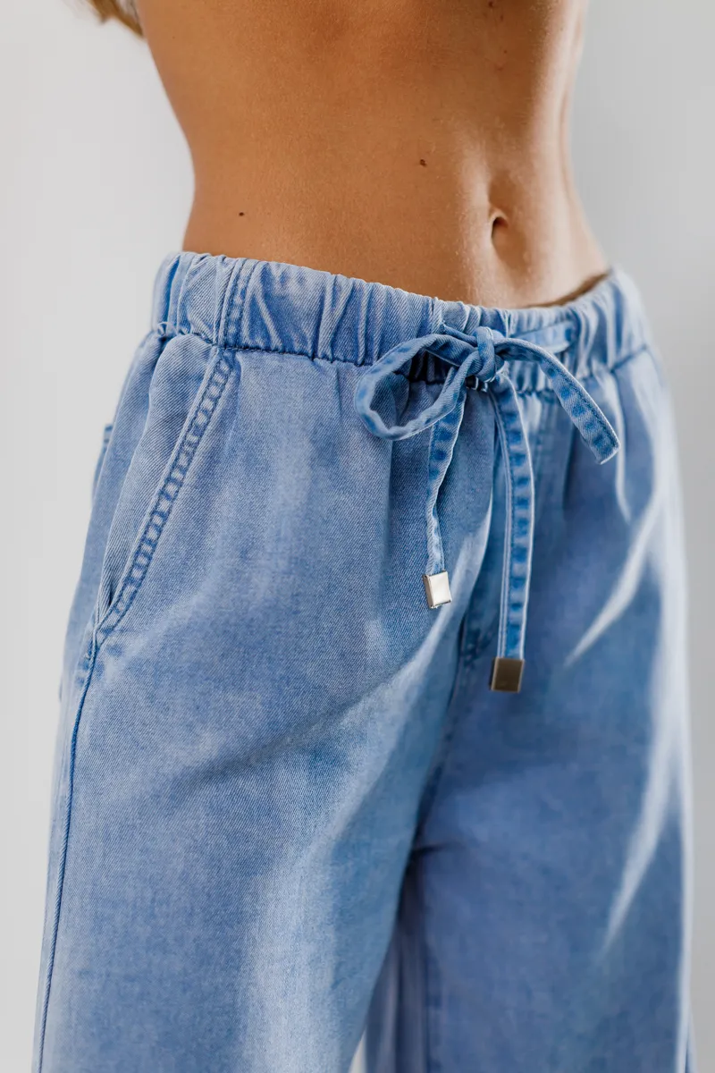 Джинси від французьких виробників, вільного крою з зав'язками для талії для корегування - ніжниго блакитного кольору.