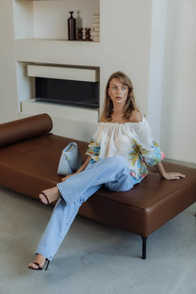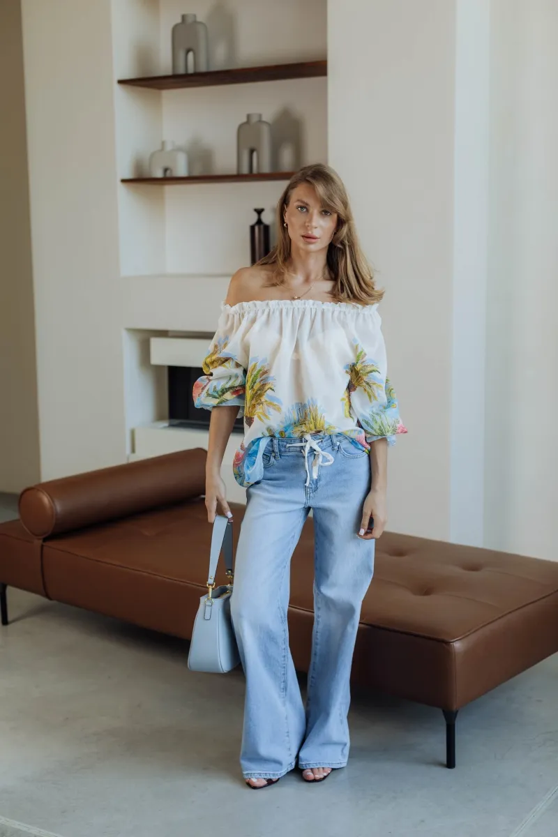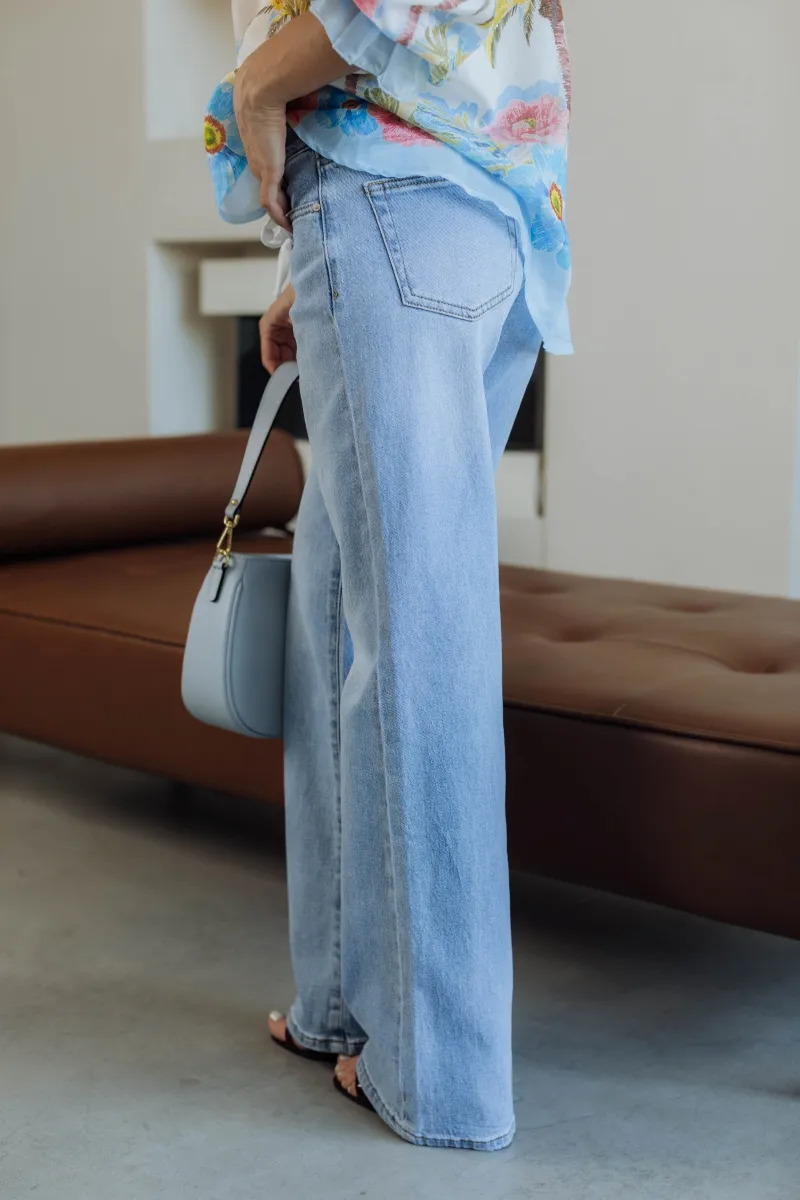 Французькі джинси з зав’язками, прямий крій, висока посадка, класичний блакитний денім