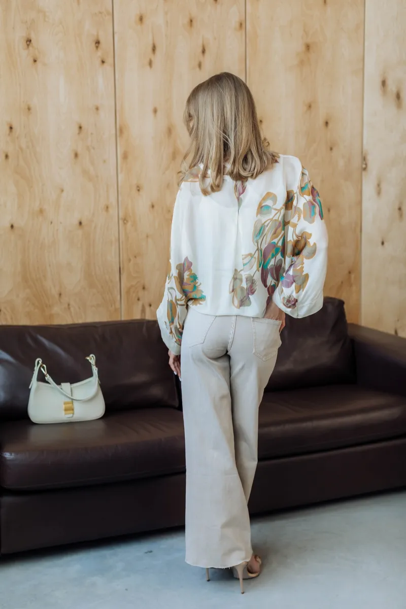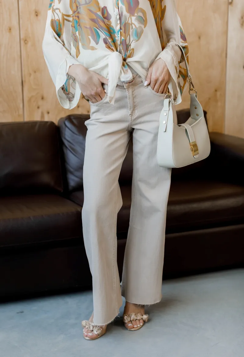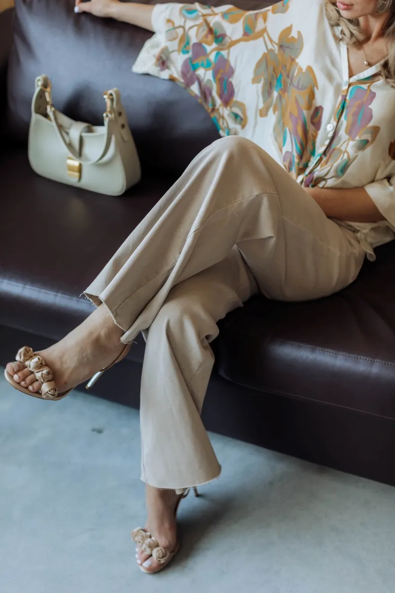 Французькі джинси з ніжного бежевого деніму, прямий крій та висока посадка