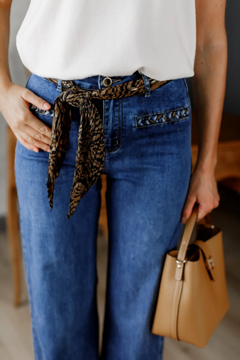 Жіночі джинси з тасьмою на кишенях