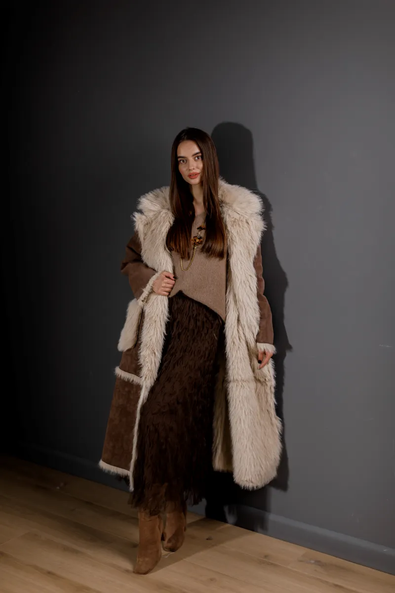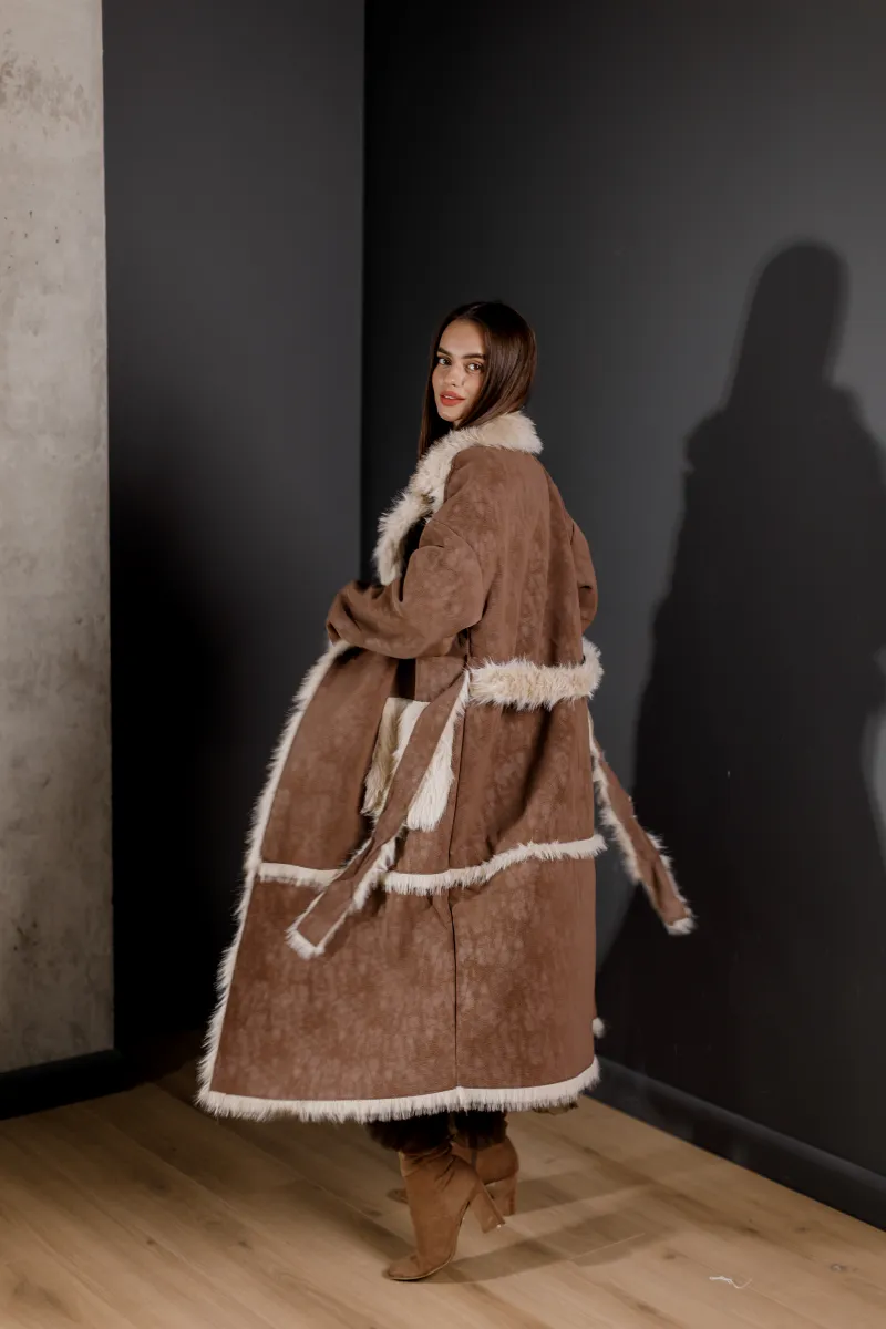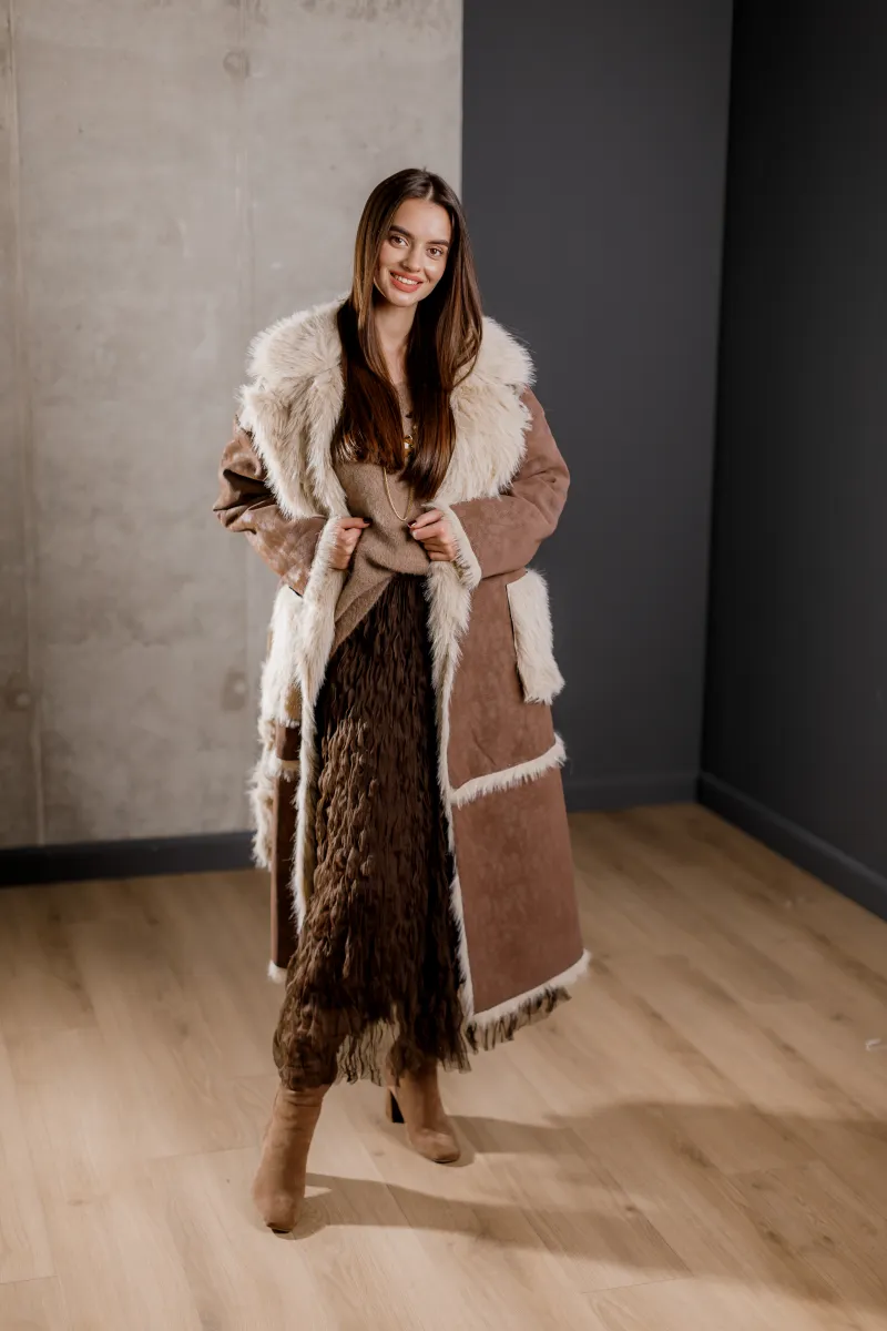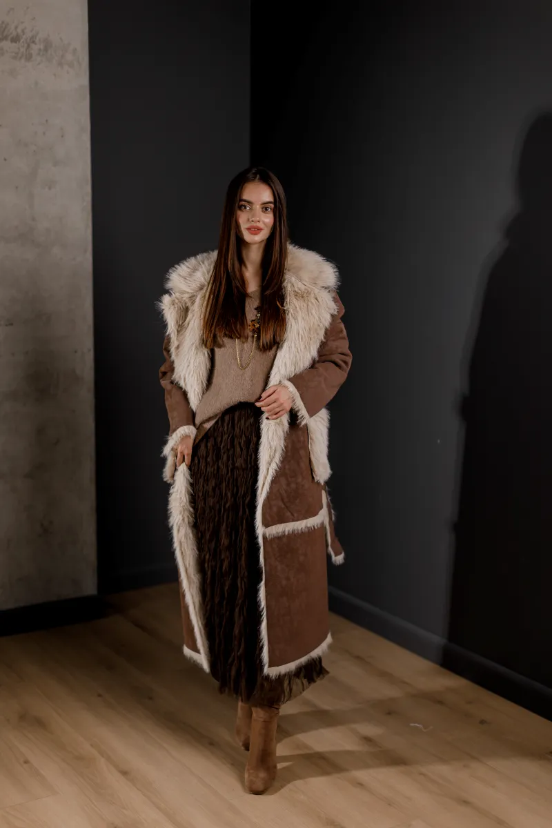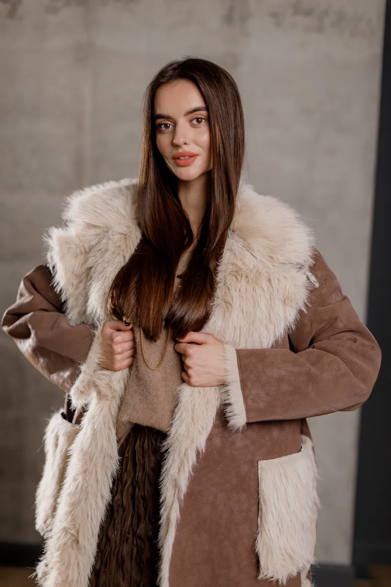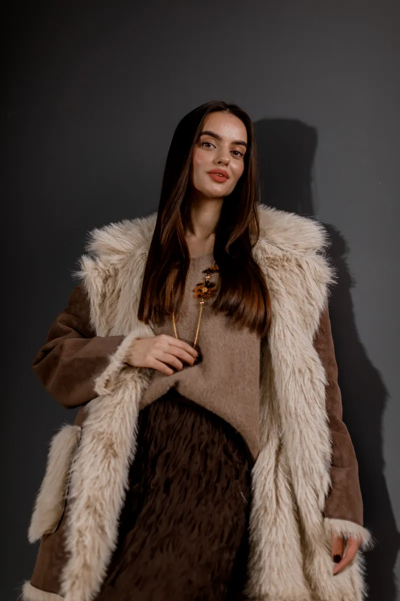 • Колір: ексклюзивний шоколадний відтінок із контрастними хутряними акцентами, що додають образу розкоші та вишуканості.
