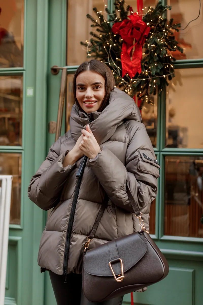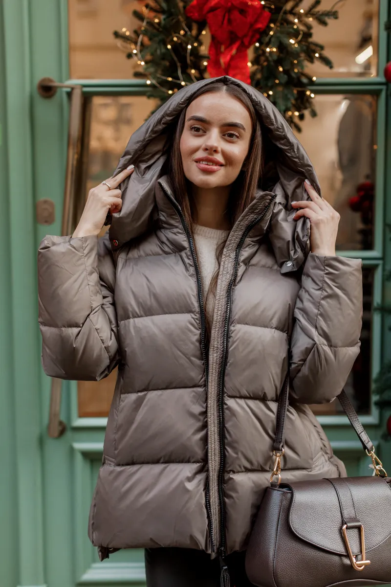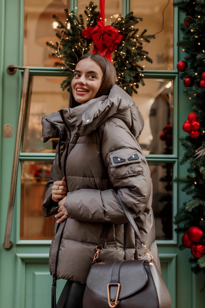 Ця модель – не просто верхній одяг, а справжній statement piece. Силует із нотками мінімалізму та витонченими деталями дозволяє легко інтегрувати пуховик у будь-який образ – від міського casual до елегантної класики. Легкий блиск тканини додає відчуття преміум-якості, а оверсайз-крій забезпечує максимальний комфорт і свободу рухів.