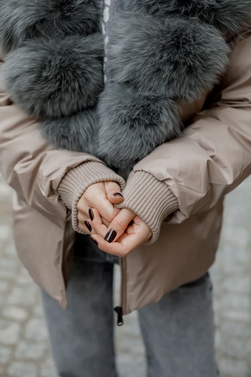 Колір: Бежевий з сірим хутром