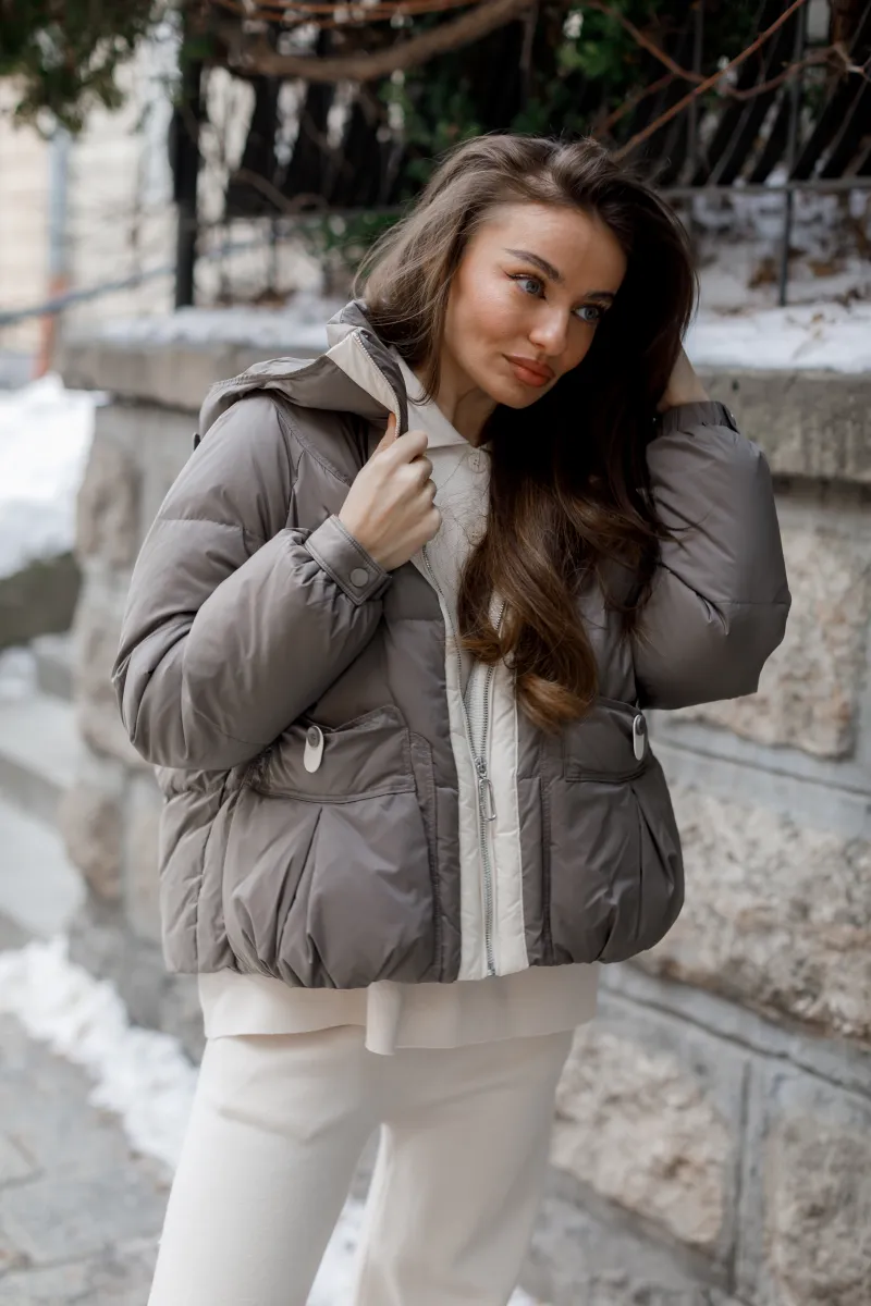 Головна Каталог товарів Жіночі куртки Пухова куртка з капюшоном у відтінку тауп