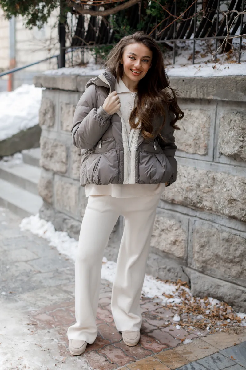Пухова куртка з капюшоном у відтінку тауп