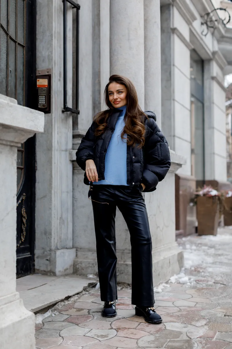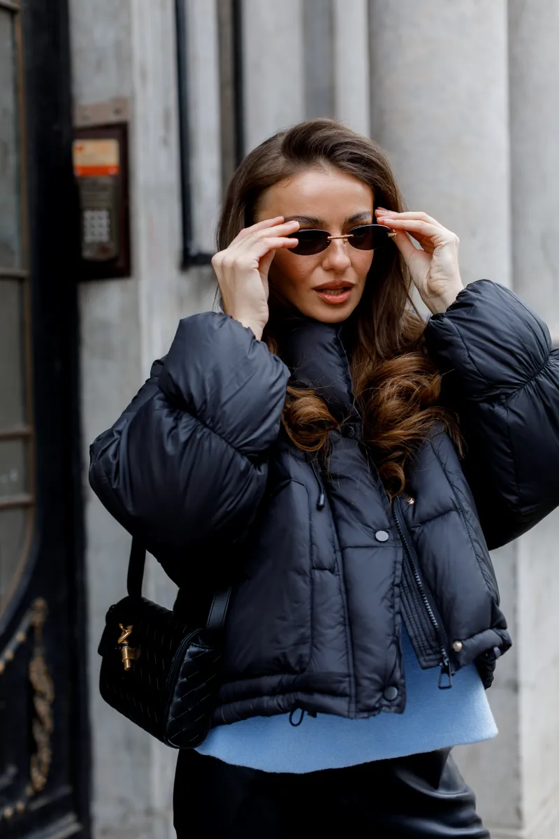 Об’ємні рукави та акуратний укорочений крій створюють стильний, актуальний силует, а чорний колір робить куртку універсальною для будь-яких образів.