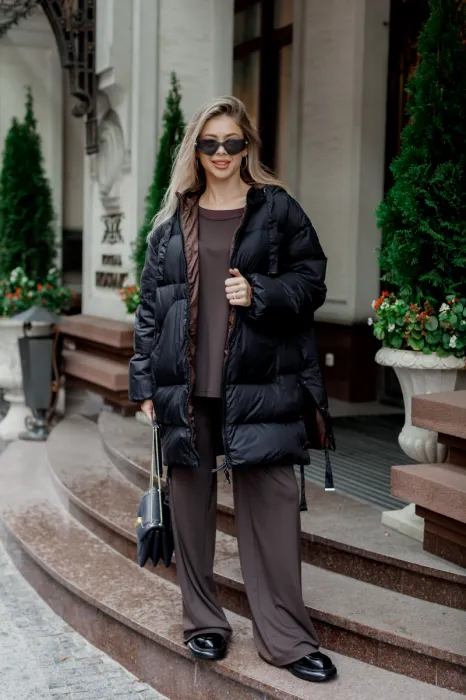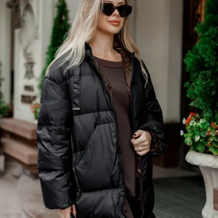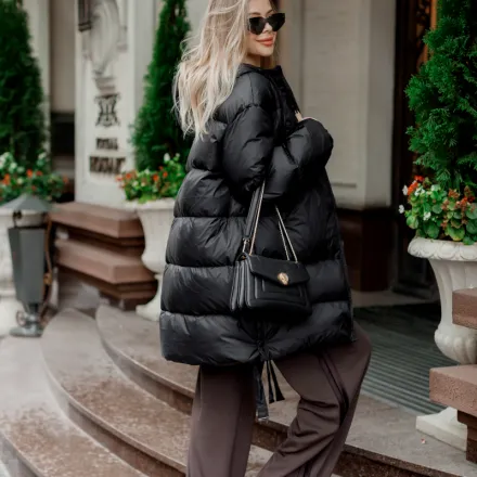 Обʼємний пуховик на натуральному лебединому пуху з водовідштовхувальним верхом. Теплий, легкий, зручний у носінні. Актуальний oversize фасон. Універсальна чорна класика.