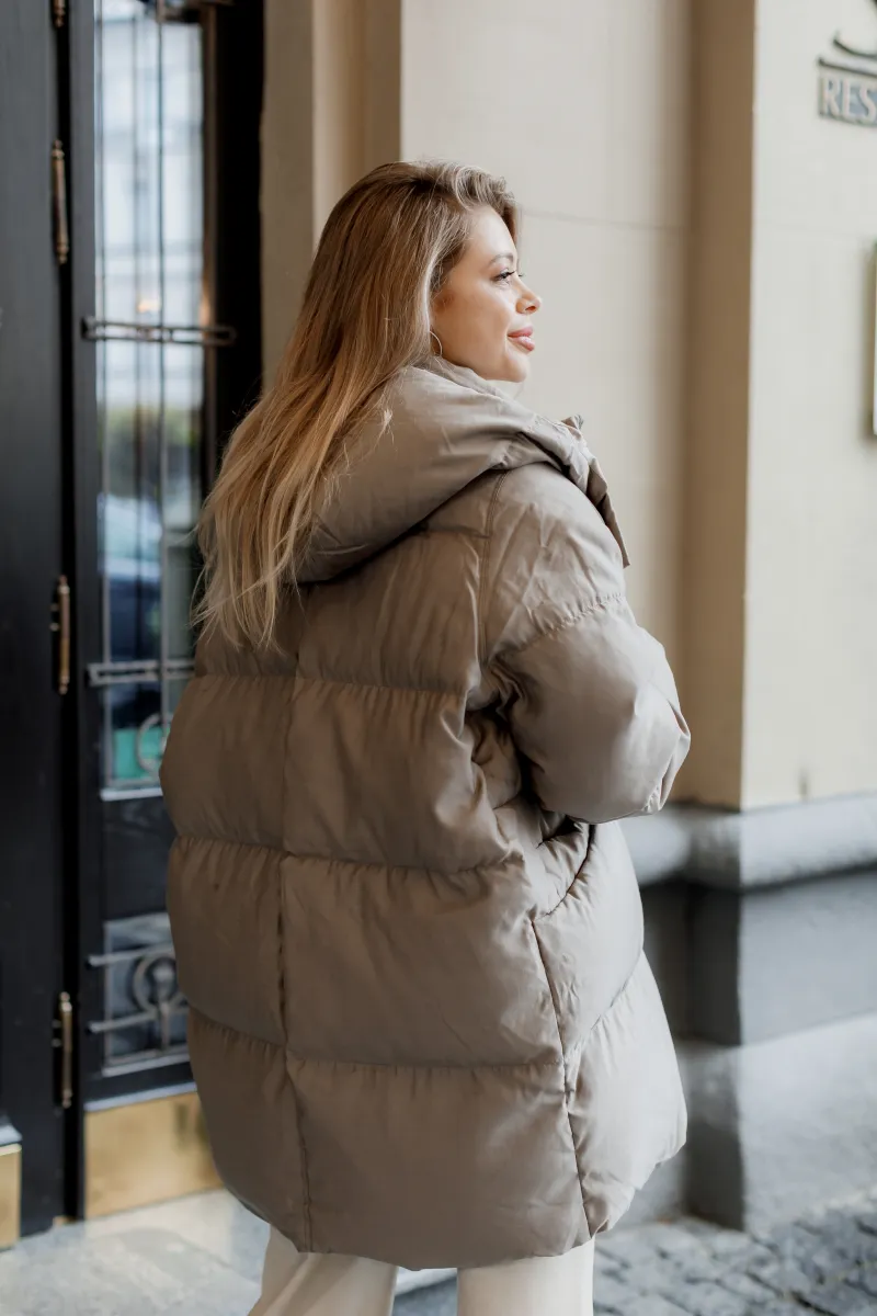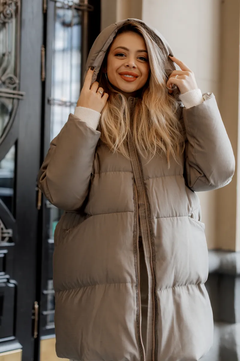 Об’ємна зимова куртка в стилі оверсайз із капюшоном — тепла, легка та надзвичайно комфортна. Наповнена натуральним лебединим пухом, який забезпечує максимальну термоізоляцію навіть у найхолодніші дні. Модель має приховану блискавку, глибокі кишені по боках і зручні еластичні манжети. Внутрішня підкладка м’яка, приємна до тіла. Ідеальний варіант для міського гардероба.