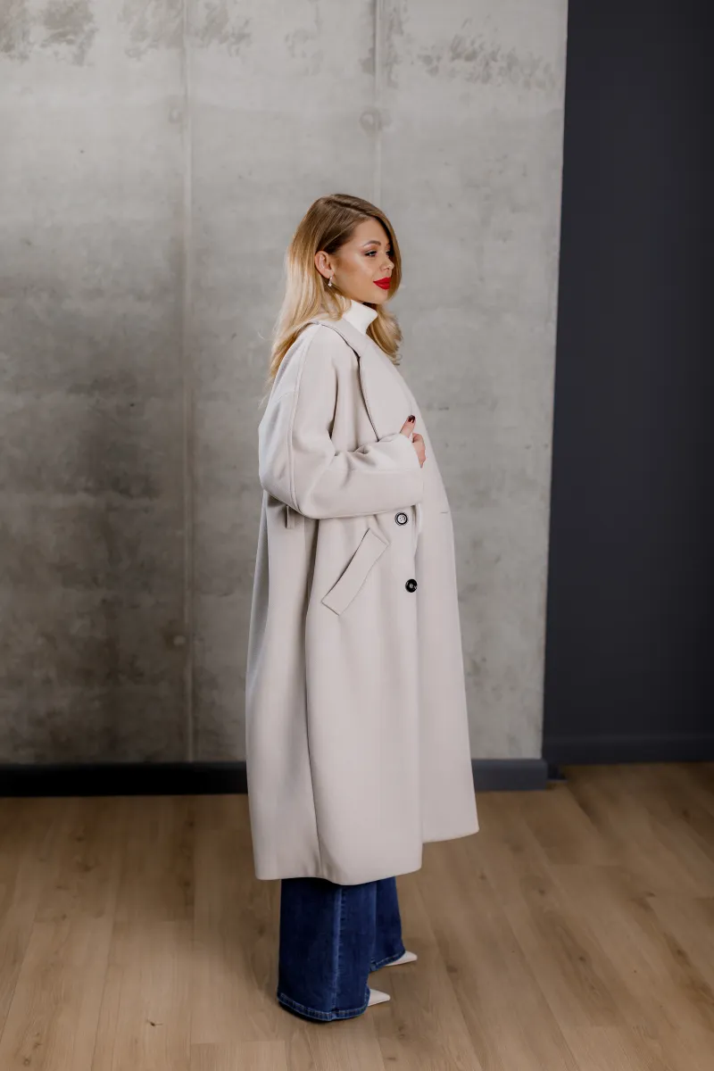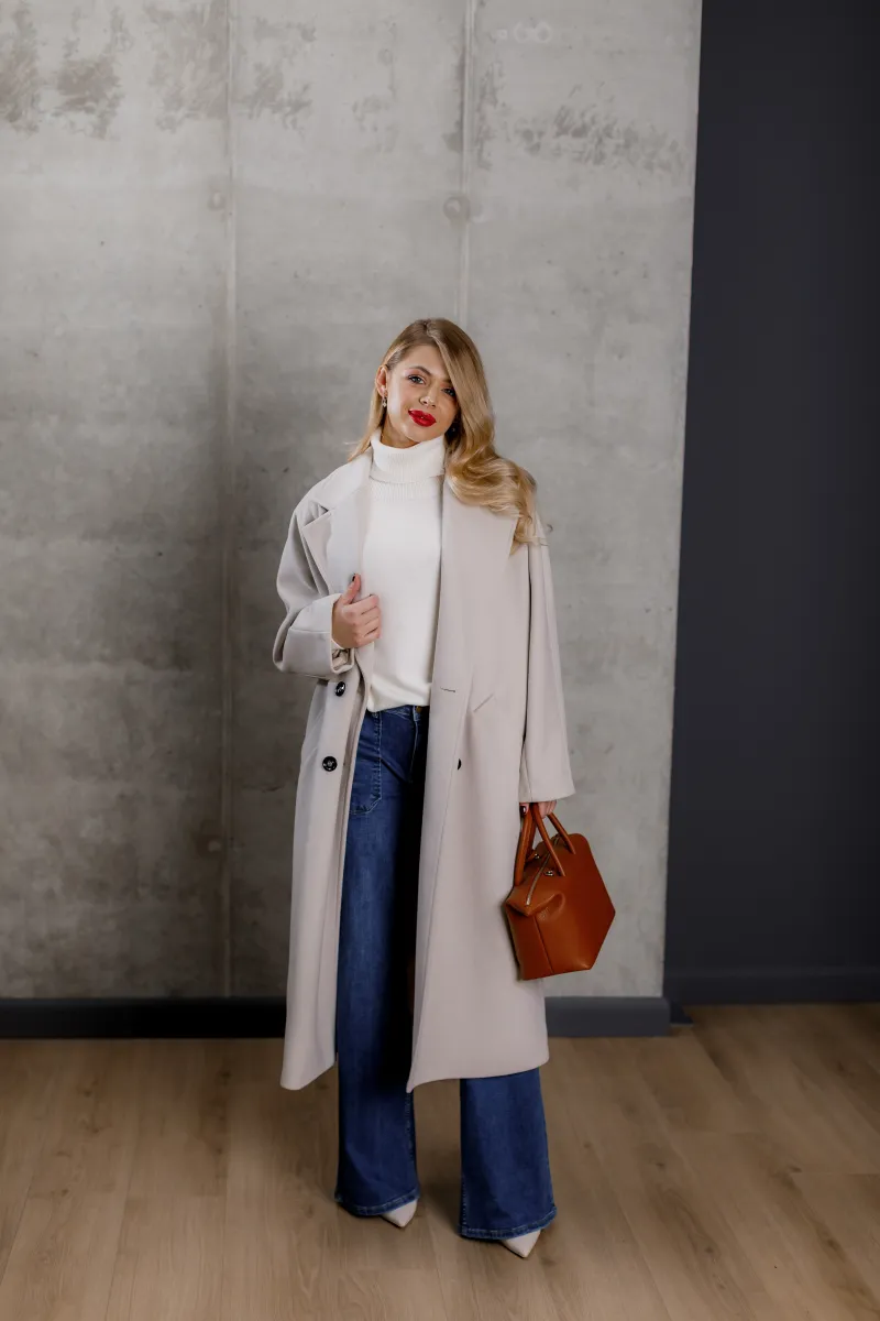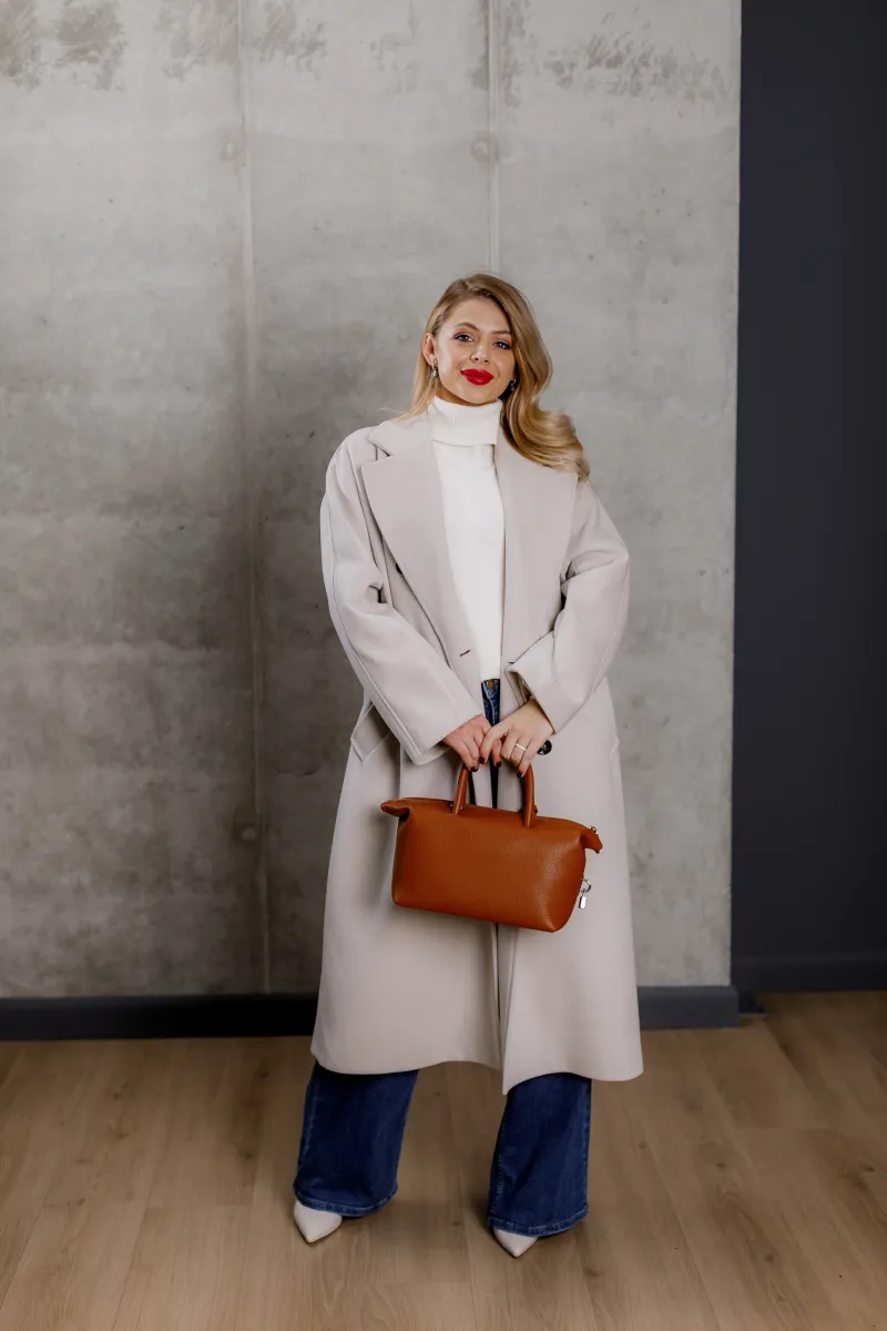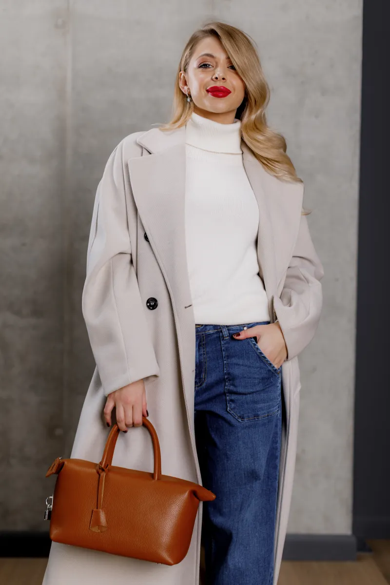 - Модель: Міді пальто з об'ємними лацканами та поясом з екошкіри