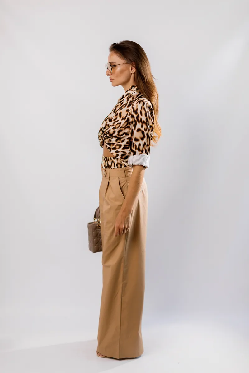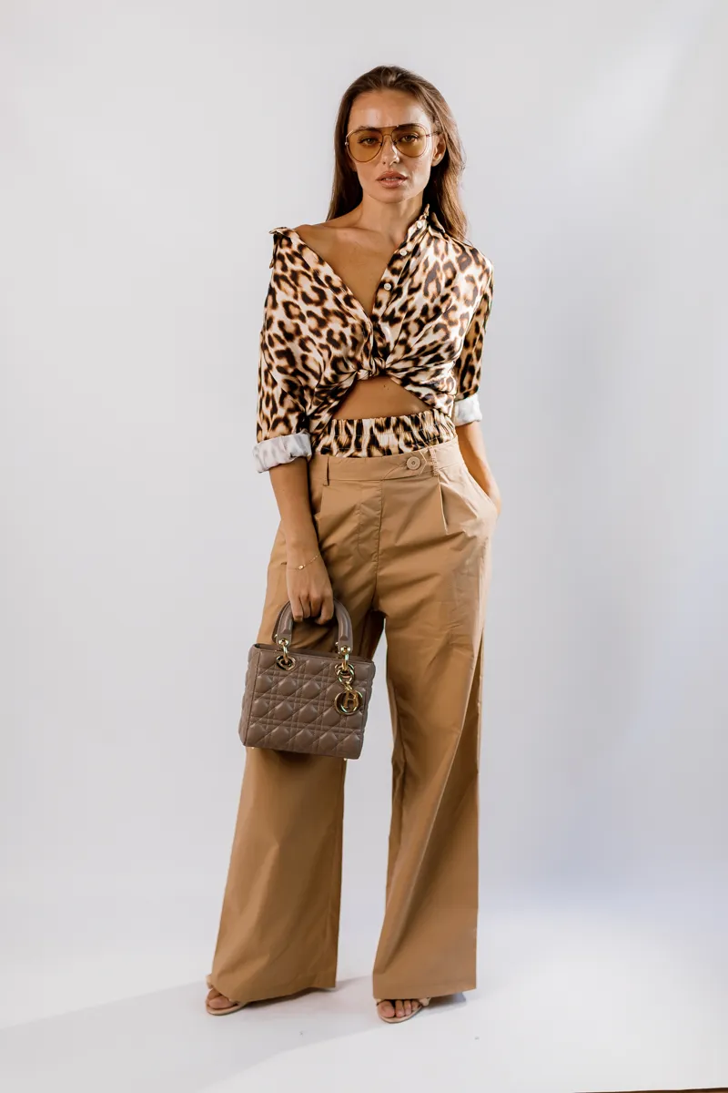 Ці стильні штани від італійського бренду IMPERIAL виготовлені з 100% натуральної бавовни, що забезпечує комфорт та якість. Висока посадка підкреслює фігуру та додає сучасного вигляду, а трендова леопардова вставка робить штани унікальними та модними.