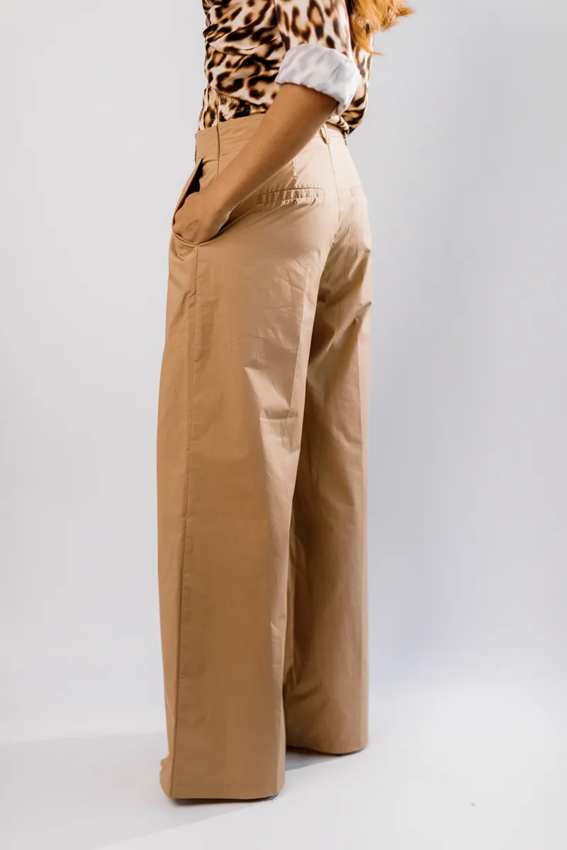 Фасон прямий, що підходить для будь-якого типу фігури, а колір кемел додає елегантності та універсальності, роблячи ці штани ідеальним вибором як для повсякденного носіння, так і для особливих випадків.